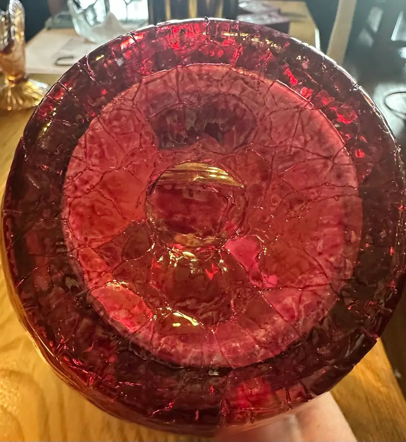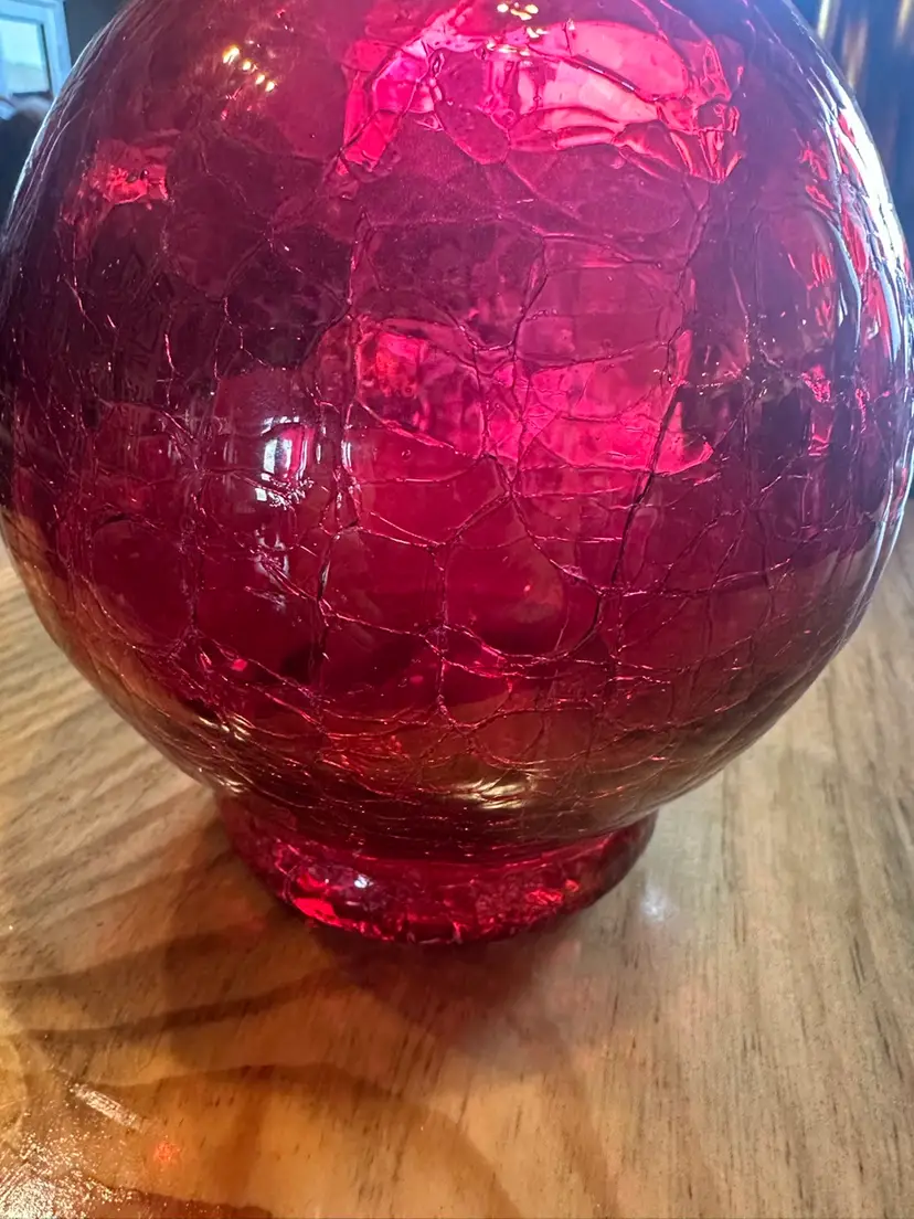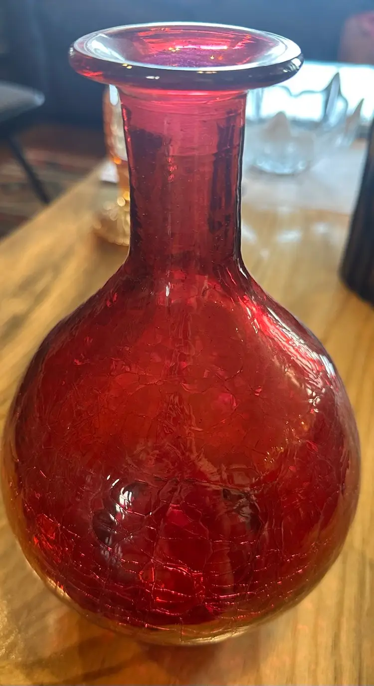It’s heavy and good quality hand blown glass, but there is no maker’s mark No stopper In excellent condition with no chips or cracks Appx 10” tall