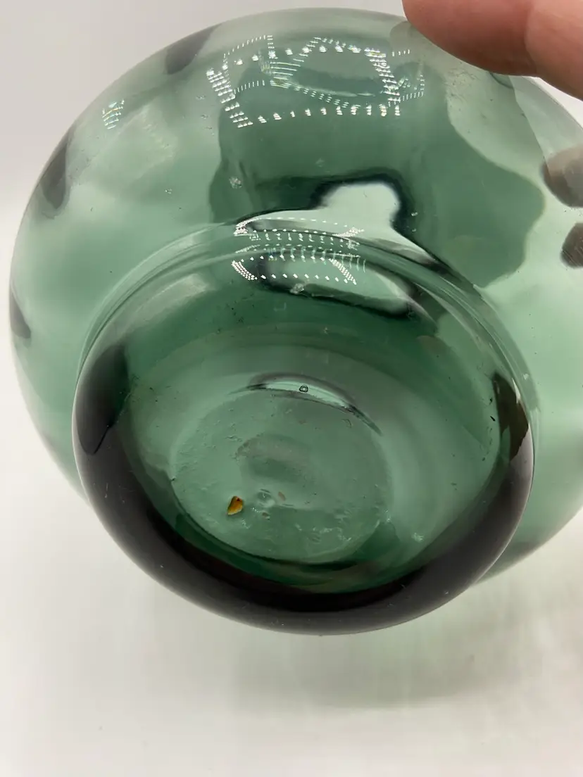 6.25” tall. Small scratch. Appears to have been used with some wear inside the vase.