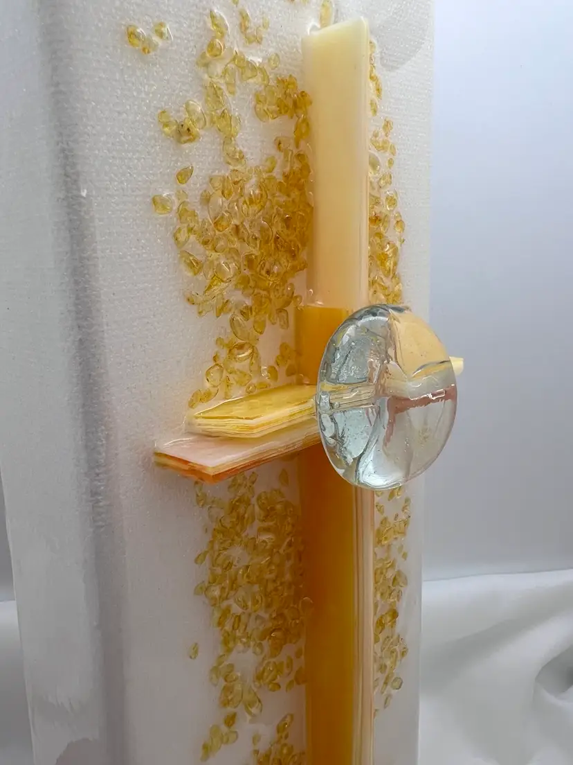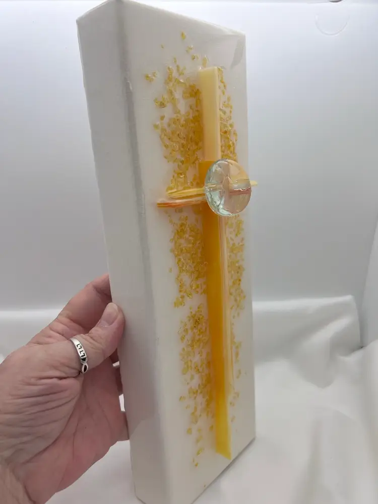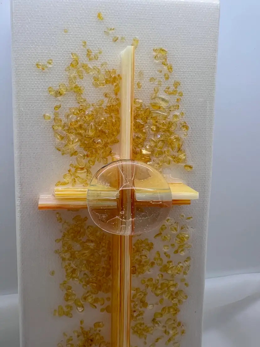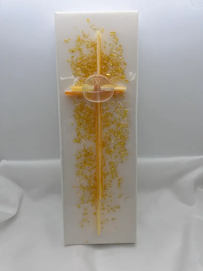 Original artwork made by me. Yellow Stained Glass cross with crushed glass a d resin on a 4 x 12 x 1 3/4” canvas. No two pieces are alike. With sawtooth hanger ready to display. Would make a very nice Mother’s Day, birthday or Christmas gift Y2