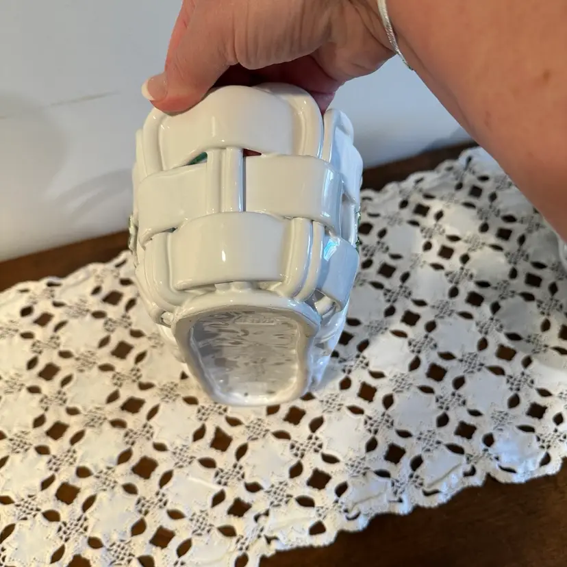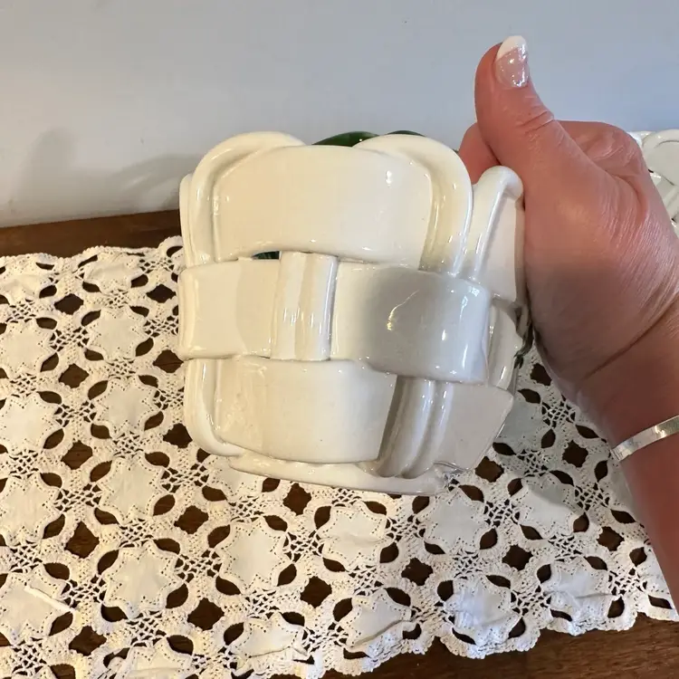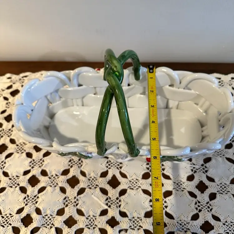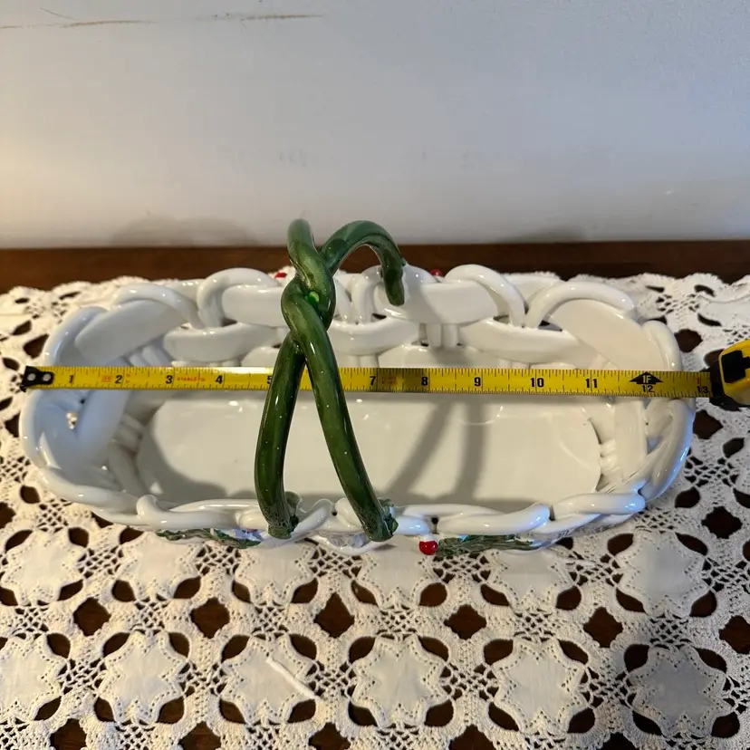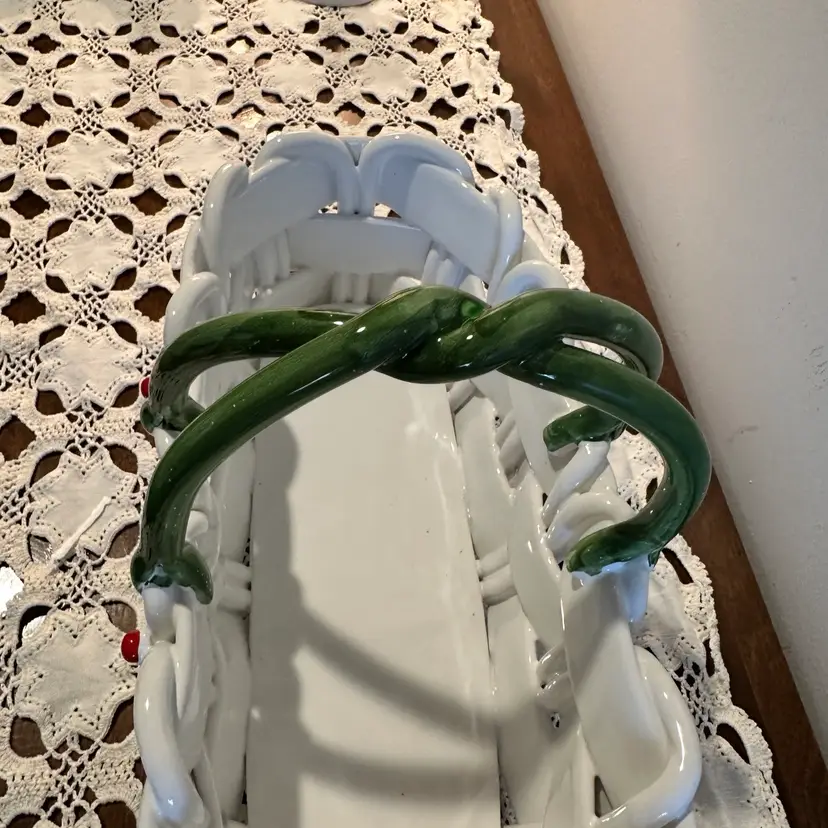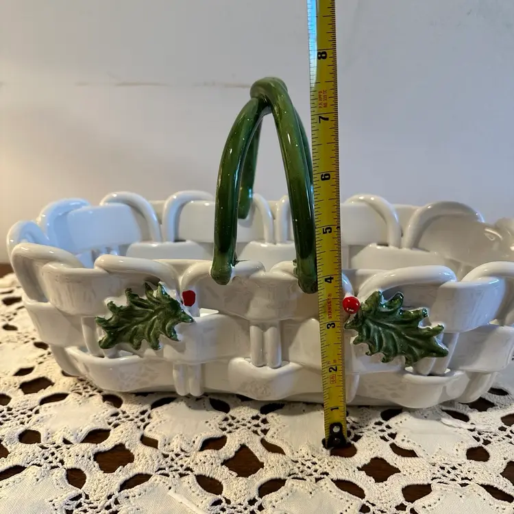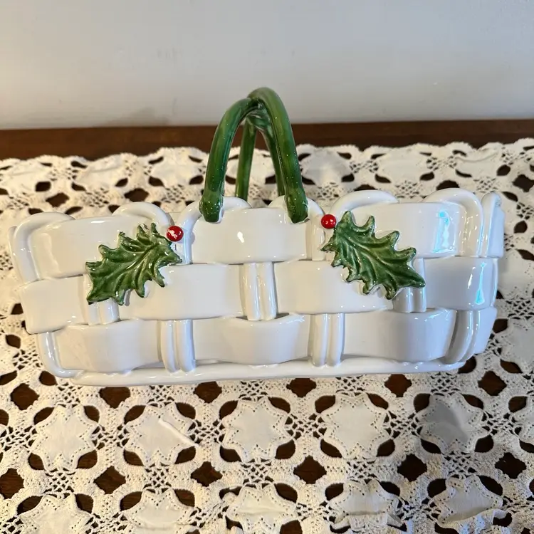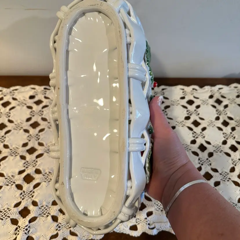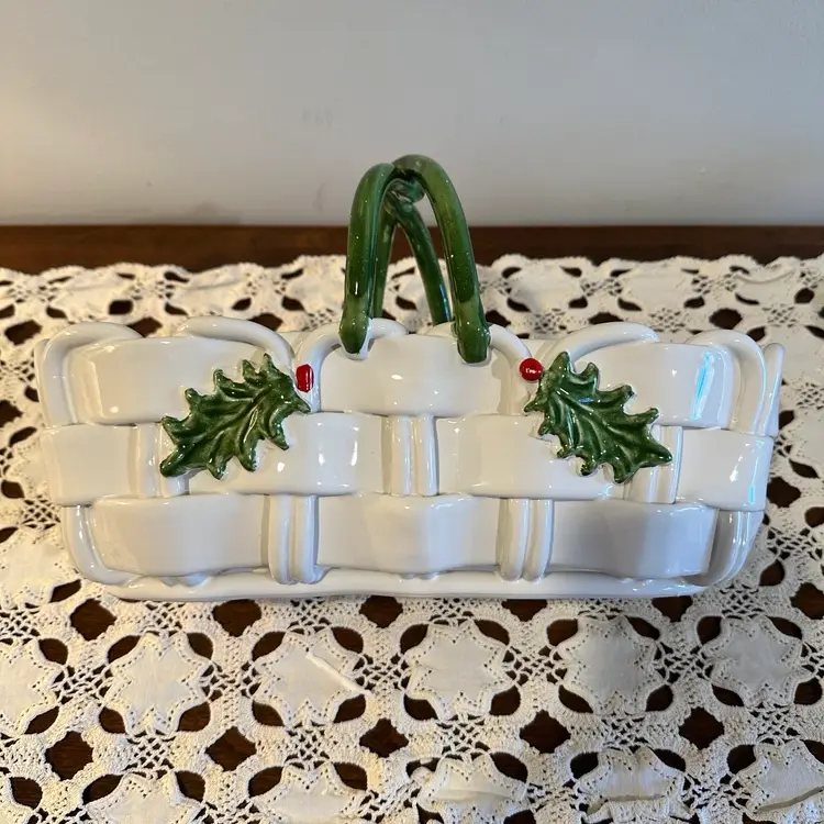 Beautiful Vintage Capodimonte Christmas Basket: Handmade Italian Ceramic Holly Berry Decor 13”x6”x8”