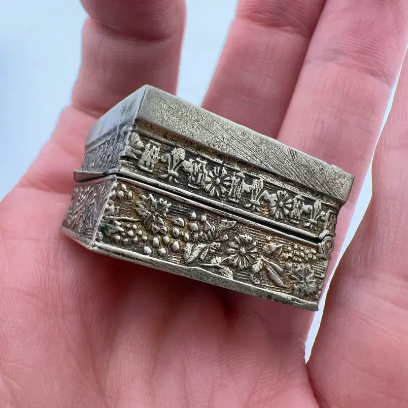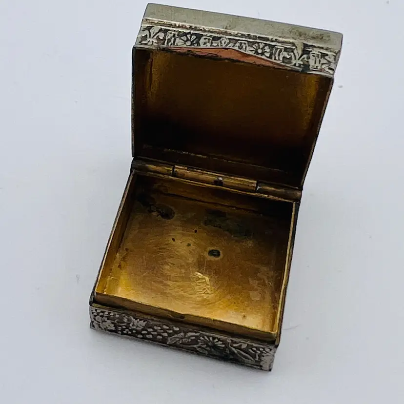 Has some wear to metal but such a pretty piece! Very detailed mosaic, all pieces appear to be intact