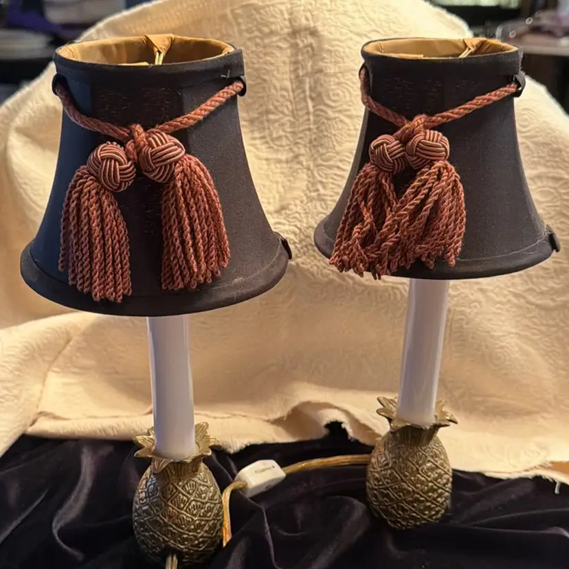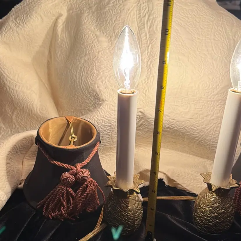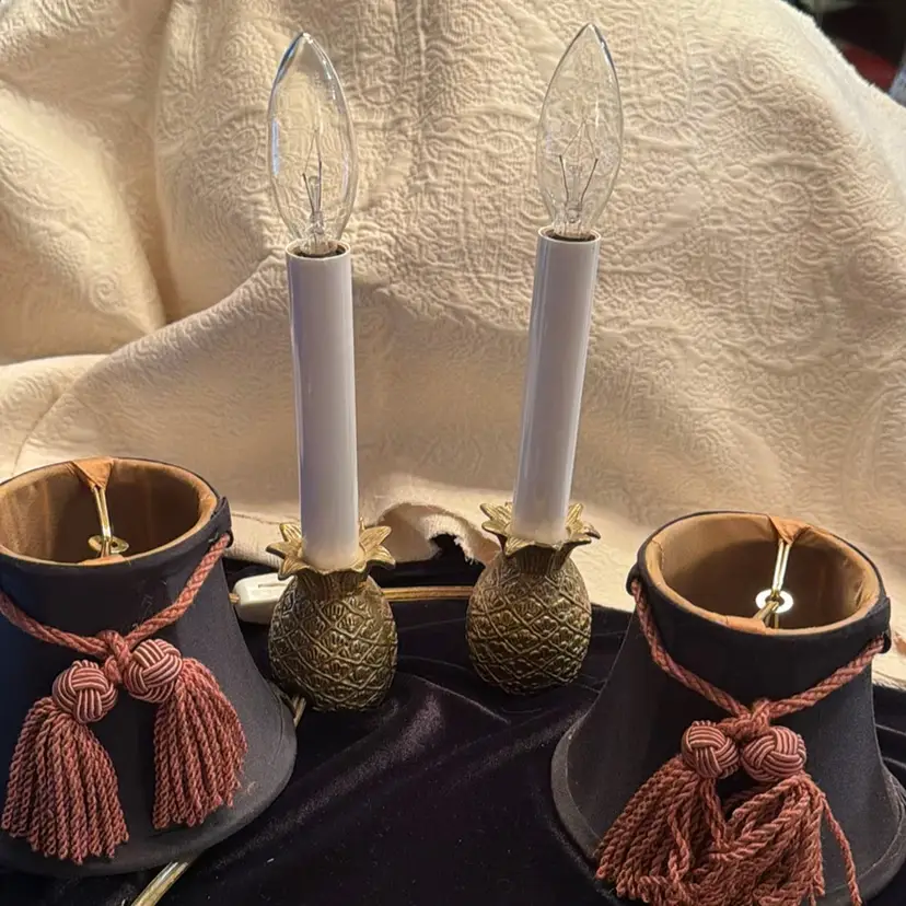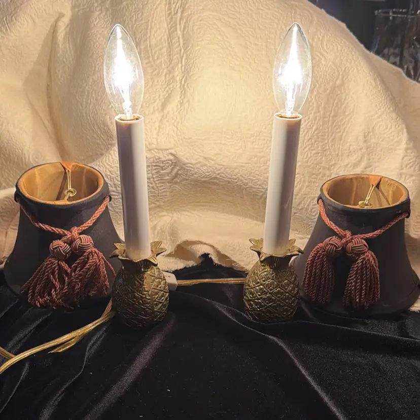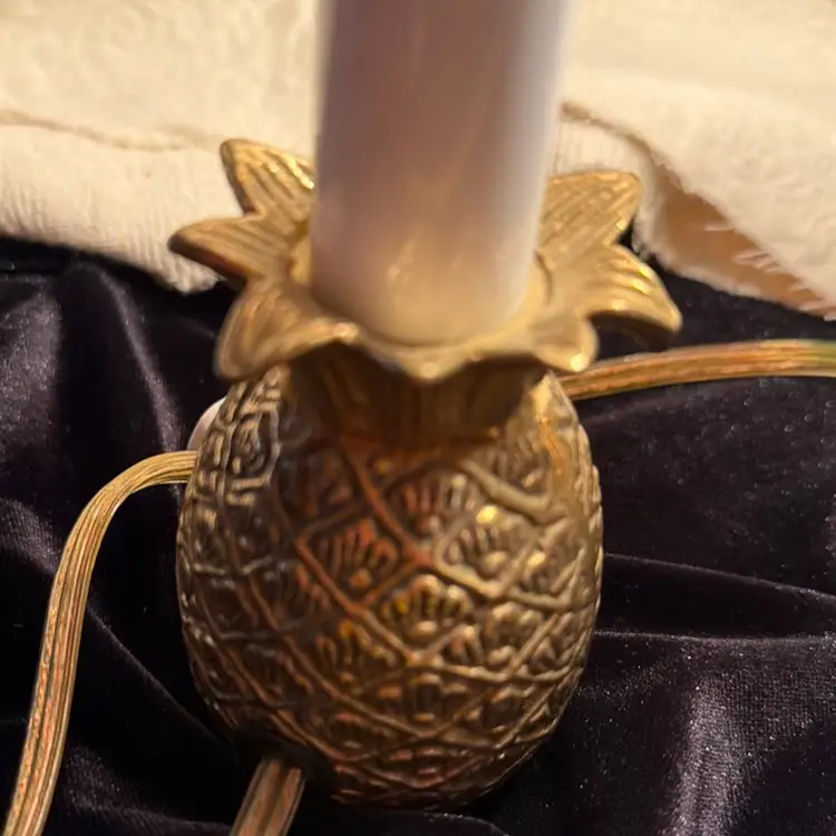 Beautiful vintage Pair Solid brass pineapple electric candlestick lamp. Style: Hollywood Regency and Chinoiserie styles. 7.5” Tall without bulb. Perfect for a Kitchen Light. Note, Bulb not included .