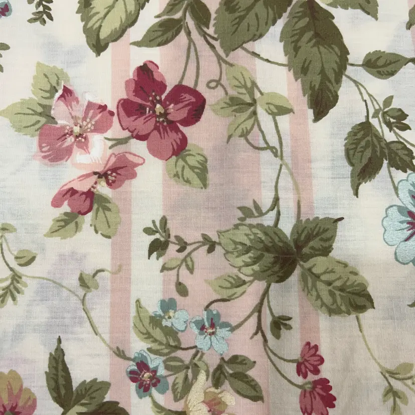 This beautiful fabric measures 27x30, so bigger than a fat quarter! It has gorgeous roses with sprays of forget-me-nots! It sports a pale pink striped background and is possibly a Waverly print.