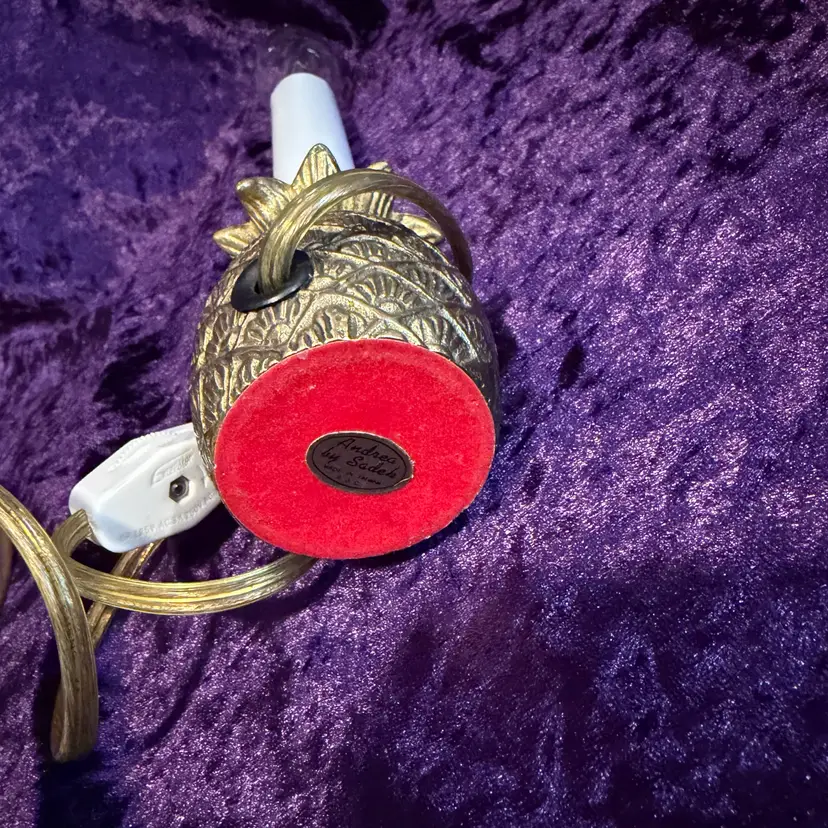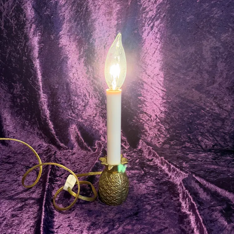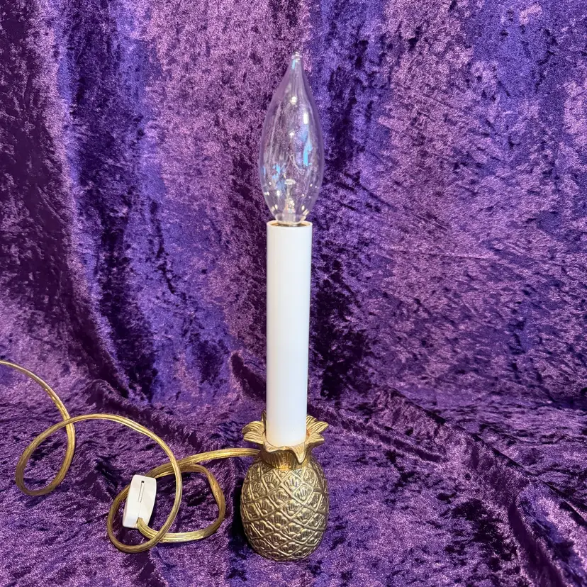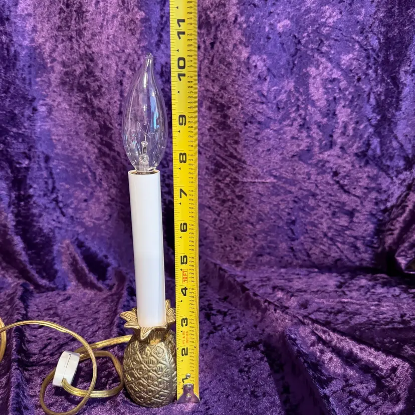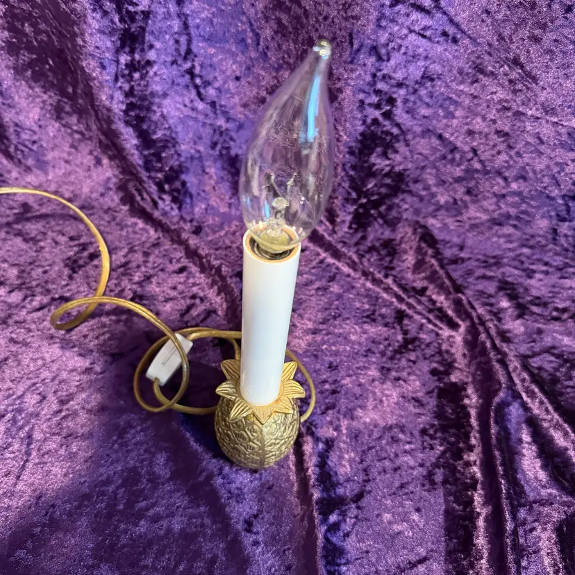 Beautiful vintage Solid brass pineapple electric candlestick lamp. Style: Hollywood Regency and Chinoiserie styles. 7.5” Tall without bulb. Perfect for a Kitchen light! Note: Light bulb and shade not included.