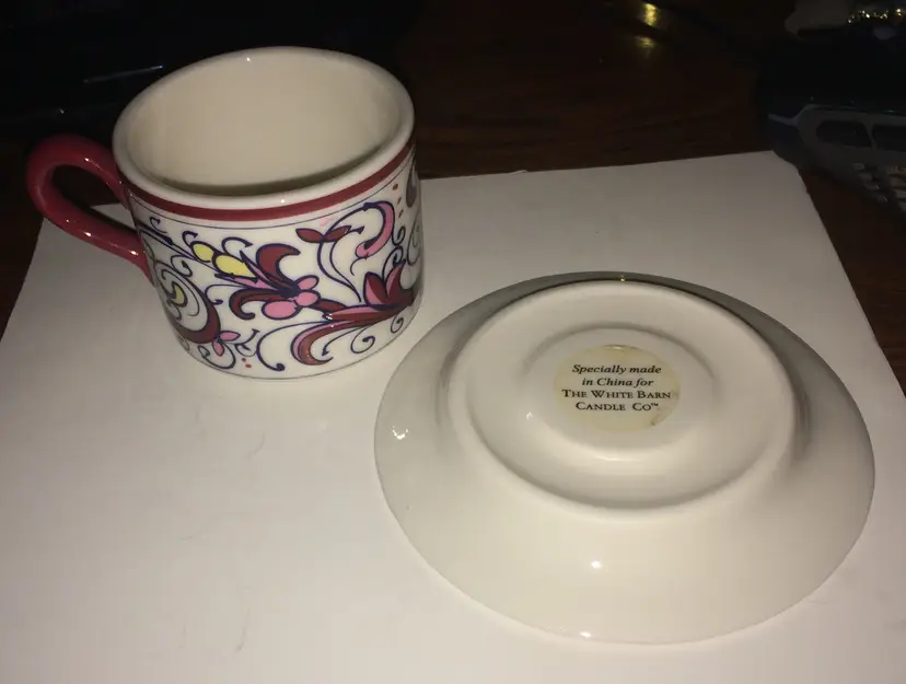Tea Cup and Saucer Set From The White Barn Candle Co. 4" wide 2" Tall! NEW to District? Enter code Michel42 into your wallet prior to your first ever purchase and save $5 off any $10 or more! Give me a Follow and I WILL Follow you back!
