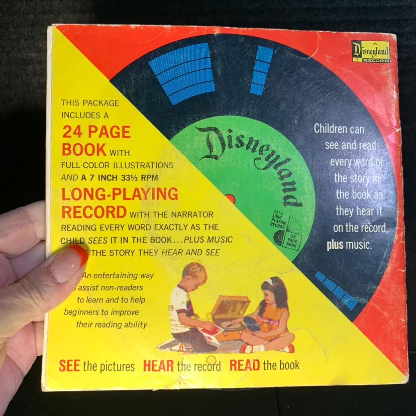 This book is in good condition but the record is cracked.. Measures 7 1/4 inches by 7 1/4 inches. Weighs 4 ounces.