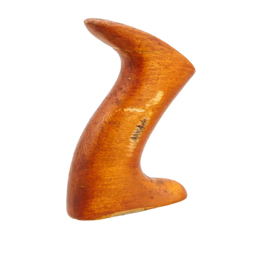 A solid original beech handle and screw for Stanley's No. 35, 36, and 37 transitional wood-bottom planes. It was salvaged from a No. 9 plane and appears to have a repair on the horn. It comes with the original hardware.