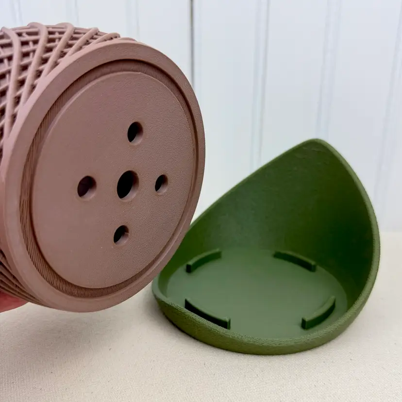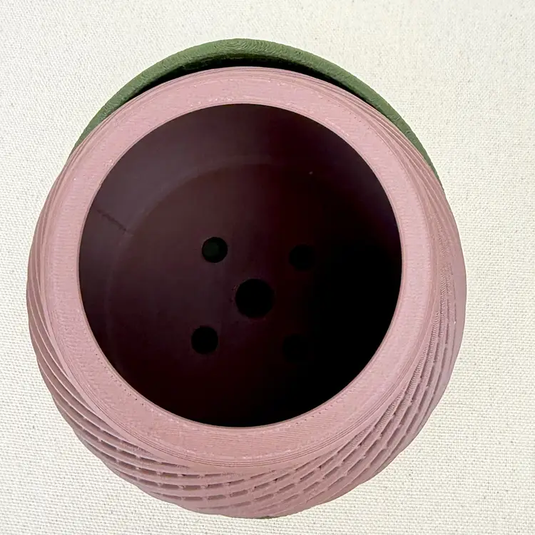 Material & Printing The planter is 3D printed using eco-friendly, biodegradable PLA plastic filament. Layers of filament are printed to create the design. Slight layer lines may be visible, adding a handmade character.