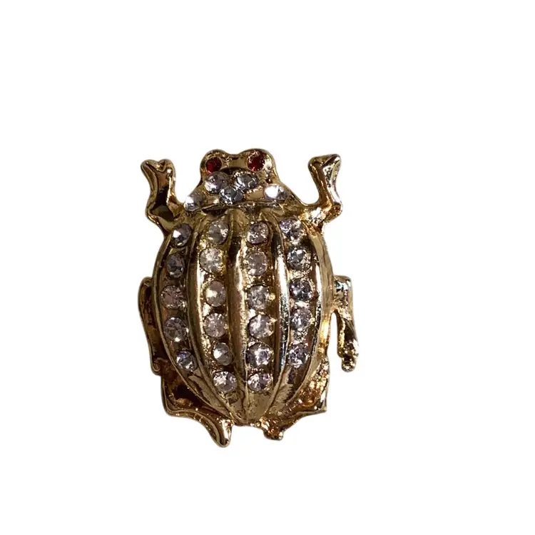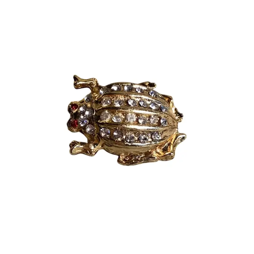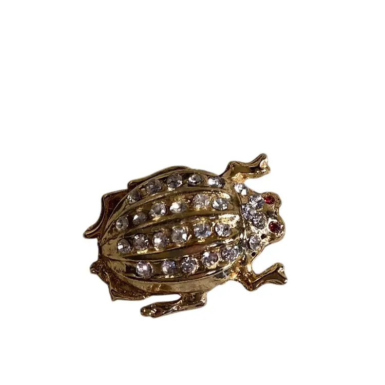 Beetle Bug Brooch Lots Of Rhinestones, Red Eyes 1.25x 1”