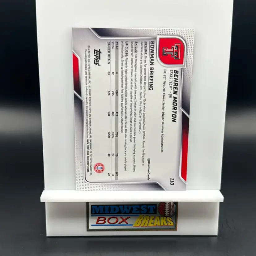 Behren Morton 1st 17/75 Purple 2025 Bowman University Chrome Texas Tech MBBCRD