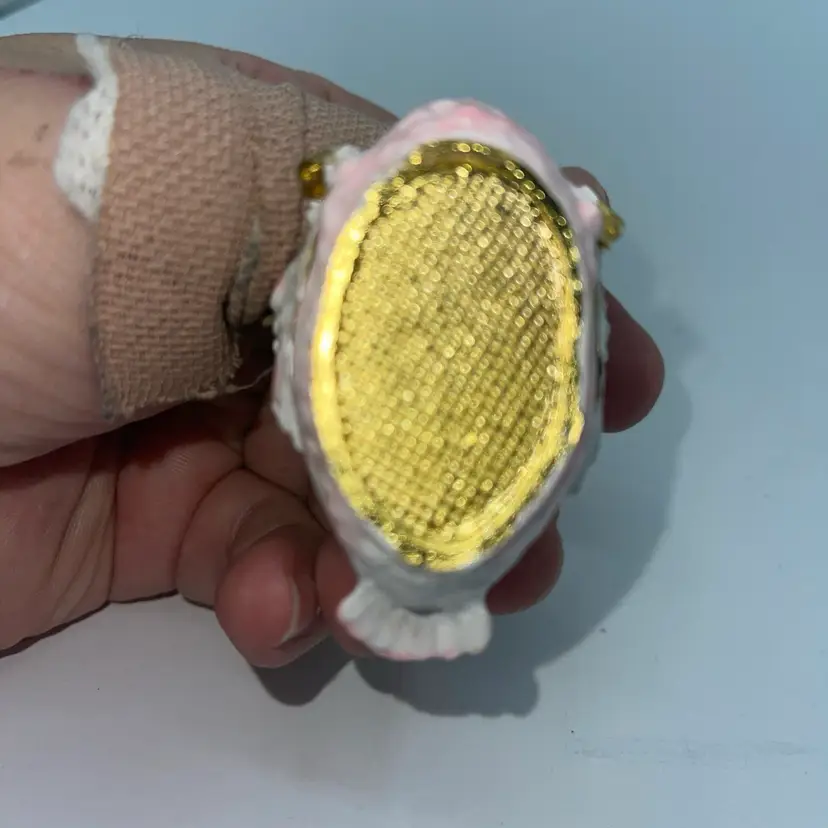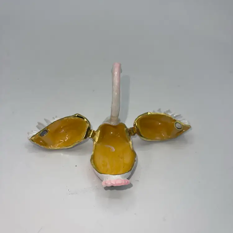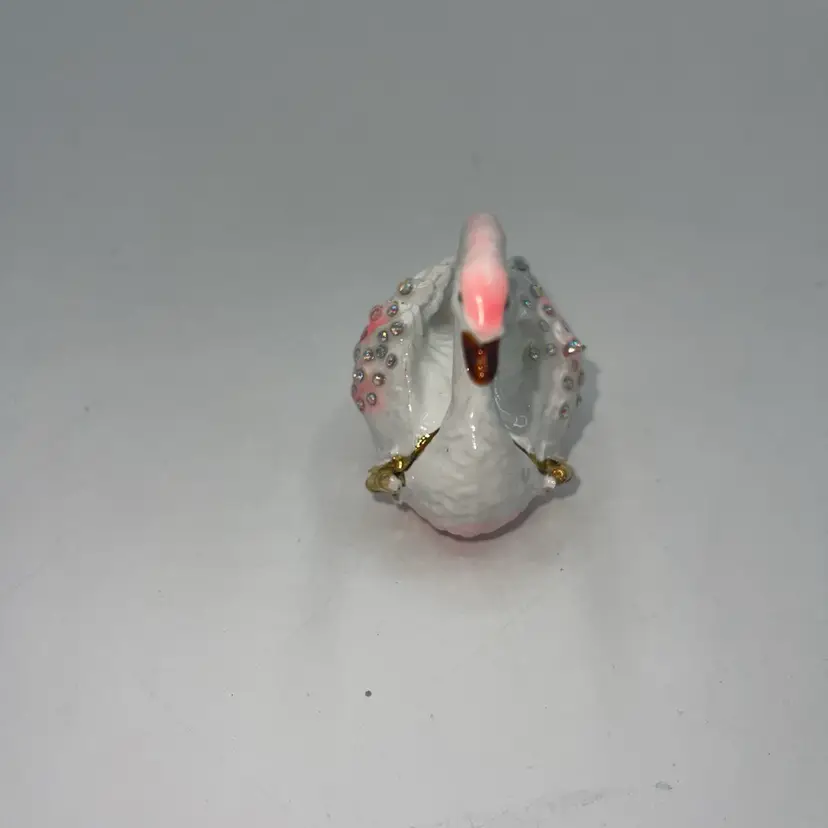 BEJEWELED PORCELAIN SWAN TRINKET BOX MAGNET CLOSURE 3"X 2”