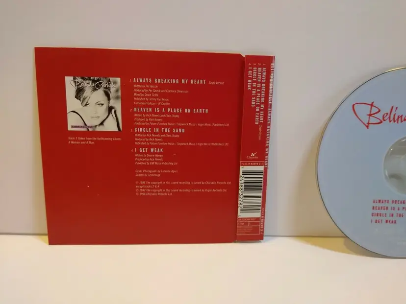 Country/Region of Manufacture: United Kingdom Style: Pop Ballad, 1990s, Synth-Pop Custom Bundle: No CD Grading: Good Plus (G+) Inlay Condition: Excellent (EX) Case Type: NO CASE Type: Single Features: Import MPN: CDCHS 5037 Language: English Title: Always Breaking My Heart Duration: EP Modified Item: No Album Name: Always Breaking My Heart Era: 1990s Artist: Belinda Carlisle Record Label: JDC Records Format: CD Release Year: 2011 Release Title: Always Breaking My Heart Genre: Rock