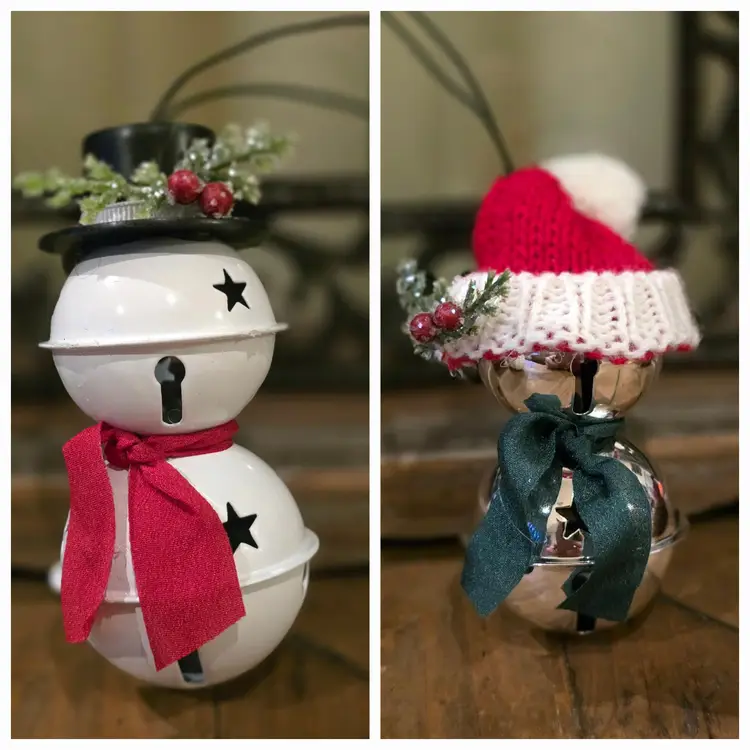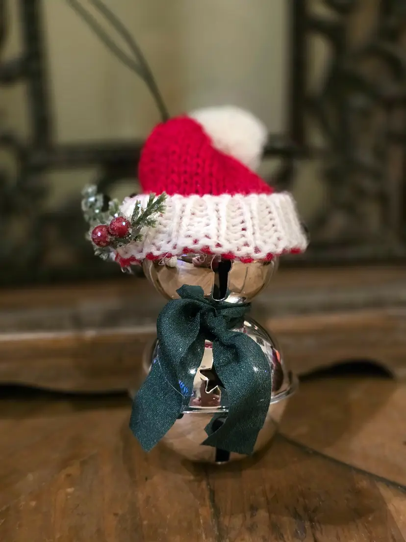 This bell Ornament comes is silver, white or red. It's adorned with a red or green scarf and a beanie or top hat. All choices are yours unless you love a surprise! SHIPS for free in US!