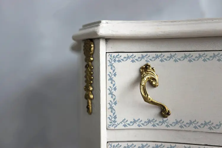 Paint, such as Fusion Mineral Paint, works beautifully with the Décor Stamps, but IOD Décor Ink gives a finer detail and tends to be a little more translucent than paint for more rustic, vintage look.
