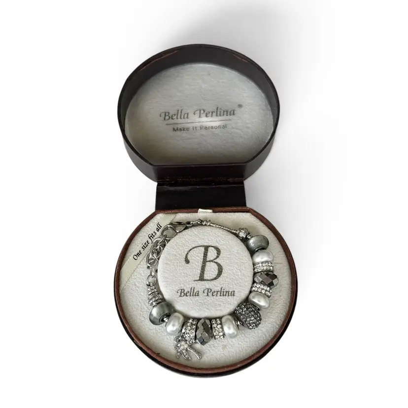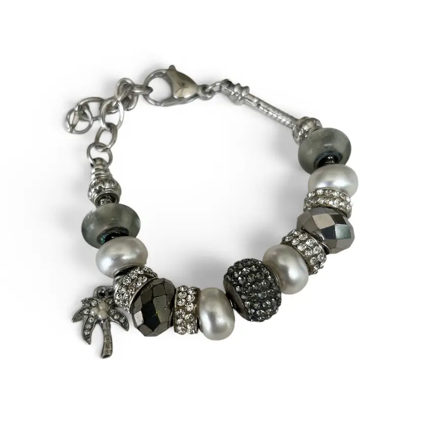 Add a touch of tropical sparkle to your jewelry collection with this Bella Perlina charm bracelet. The white crystal beads paired with playful palm tree charms create a breezy, feminine look that’s perfect for layering or wearing solo.