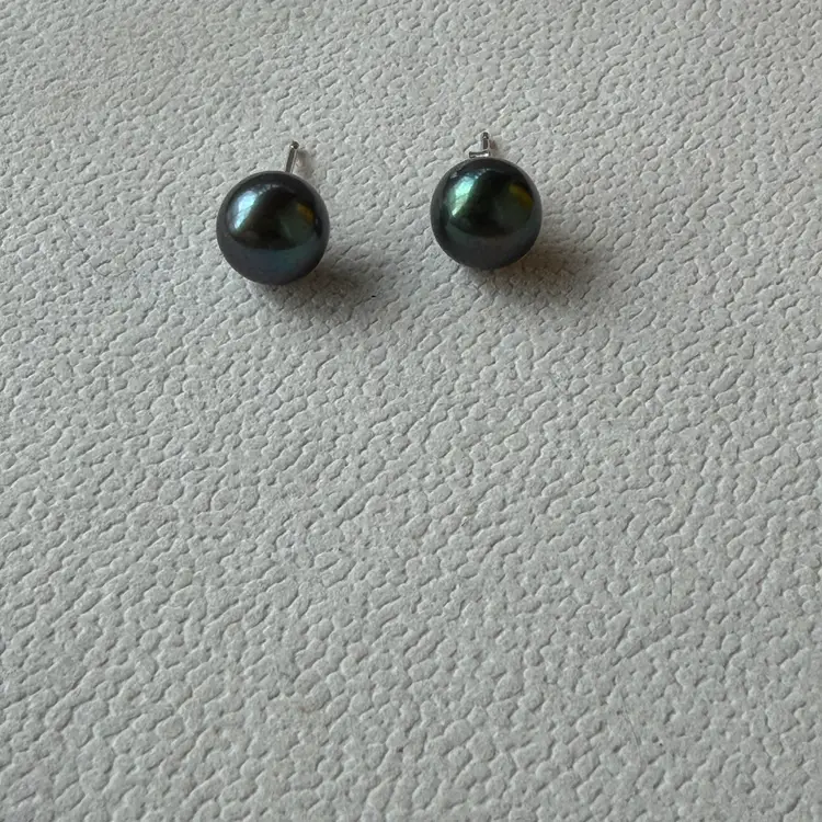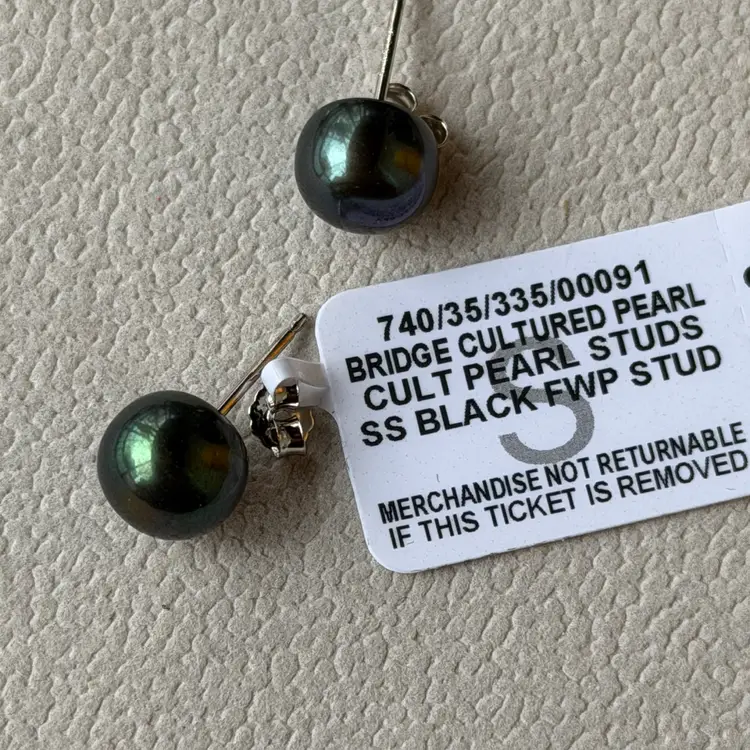 • Brand: Belle de Mer • Pearl Type: Cultured Freshwater Pearls • Pearl Size: Approximately 8–9mm • Color: Black • Metal: Sterling Silver • Style: Button Pearl Stud Earrings • Condition: New with tags • Approx. diameter: 1/3"