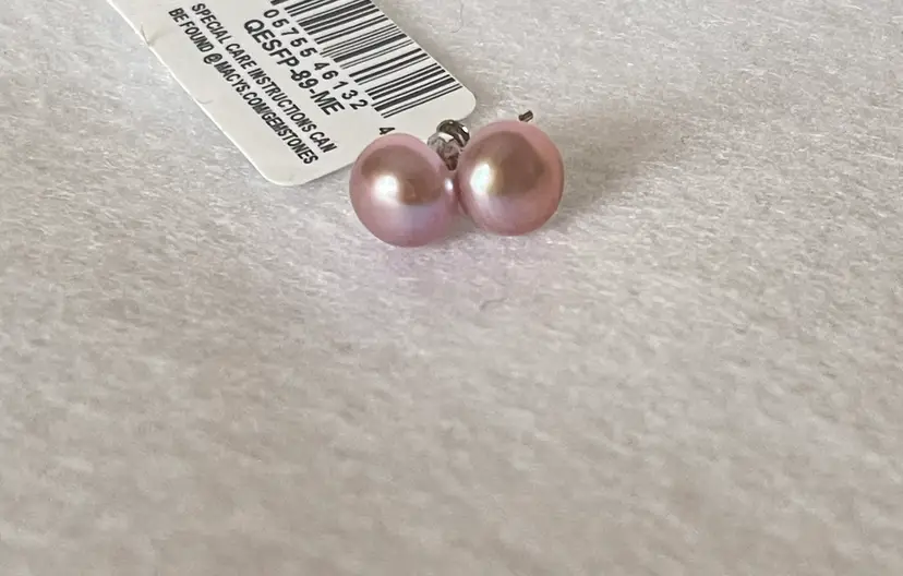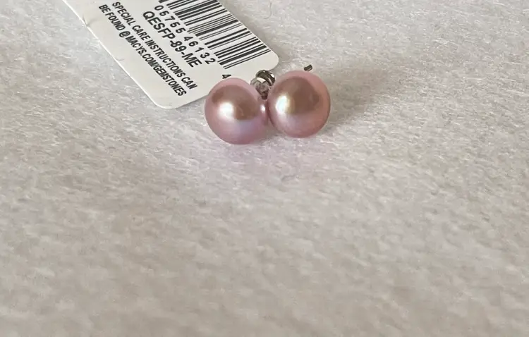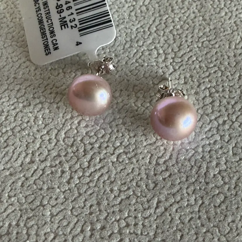 • Brand: Belle de Mer • Pearl Type: Cultured Freshwater Pearls • Pearl Size: Approximately 8–9mm • Color: Pink • Metal: Sterling Silver • Style: Button Pearl Stud Earrings • Condition: New with tags • Approx. diameter: 1/3"
