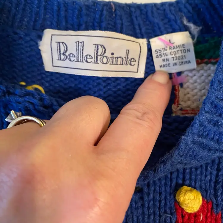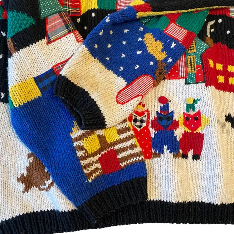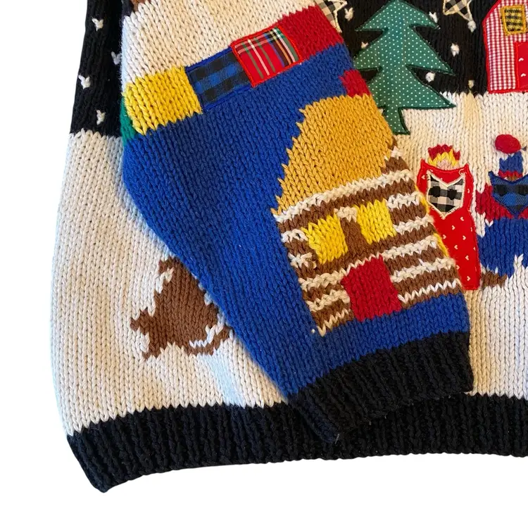 Belle Pointe Vintage Hand Knit Christmas Holiday Pullover Sweater Size large vintage