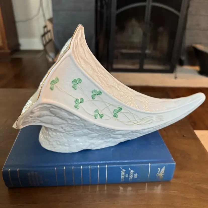 Large vintage Irish porcelain cornucopia with shamrock detailing