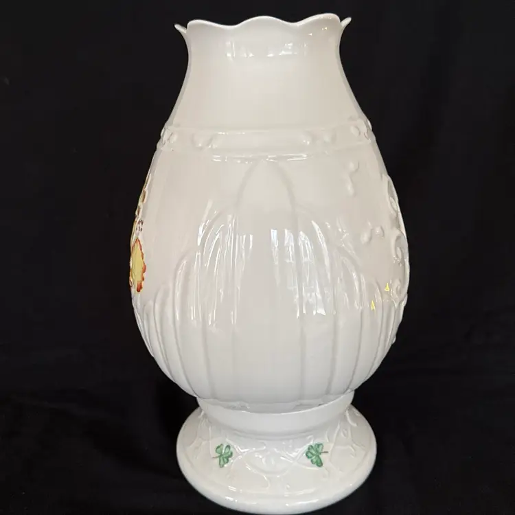 This lamp is preowned and in very good condition without chips or cracks. It comes with the base which can be used with any of the other three Belleek seasonal hurricane lamps.
