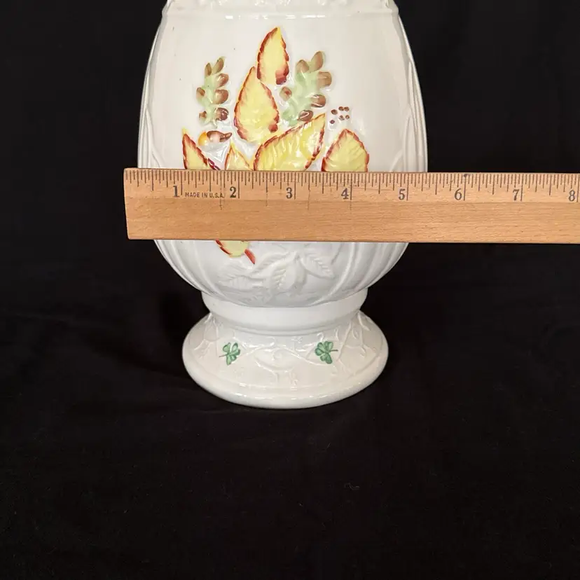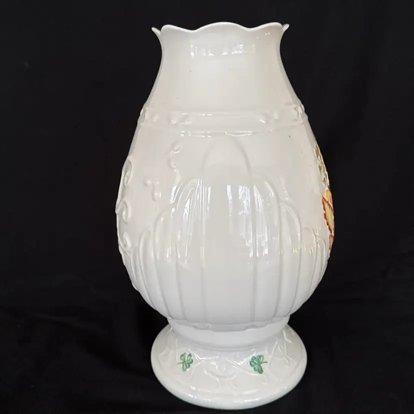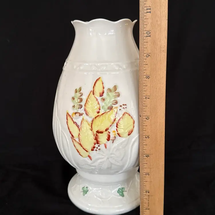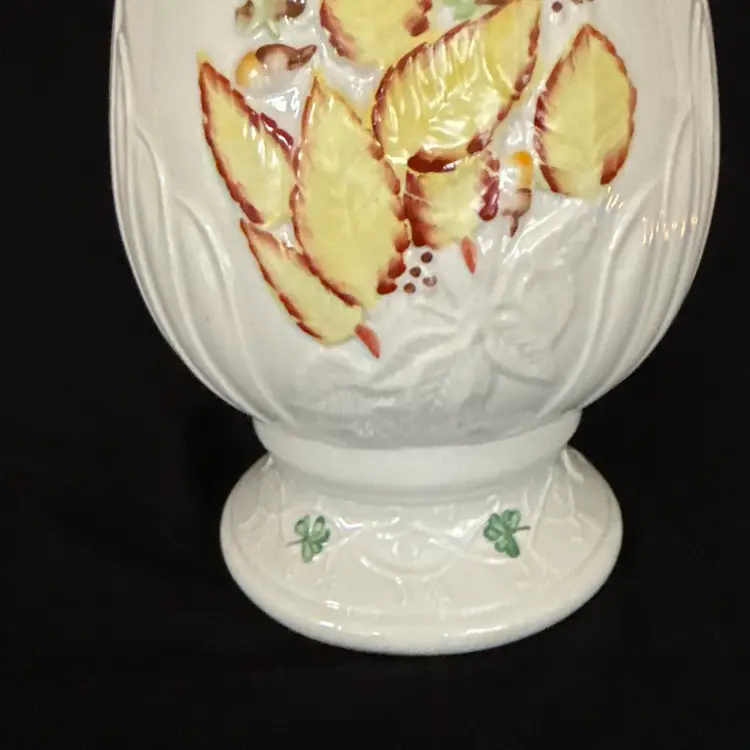 Looking for something unique for your fall decorations look no further. This beautiful autumn fall leaves, hurricane lamp by the Belleek of Ireland is exquisite and unique.
