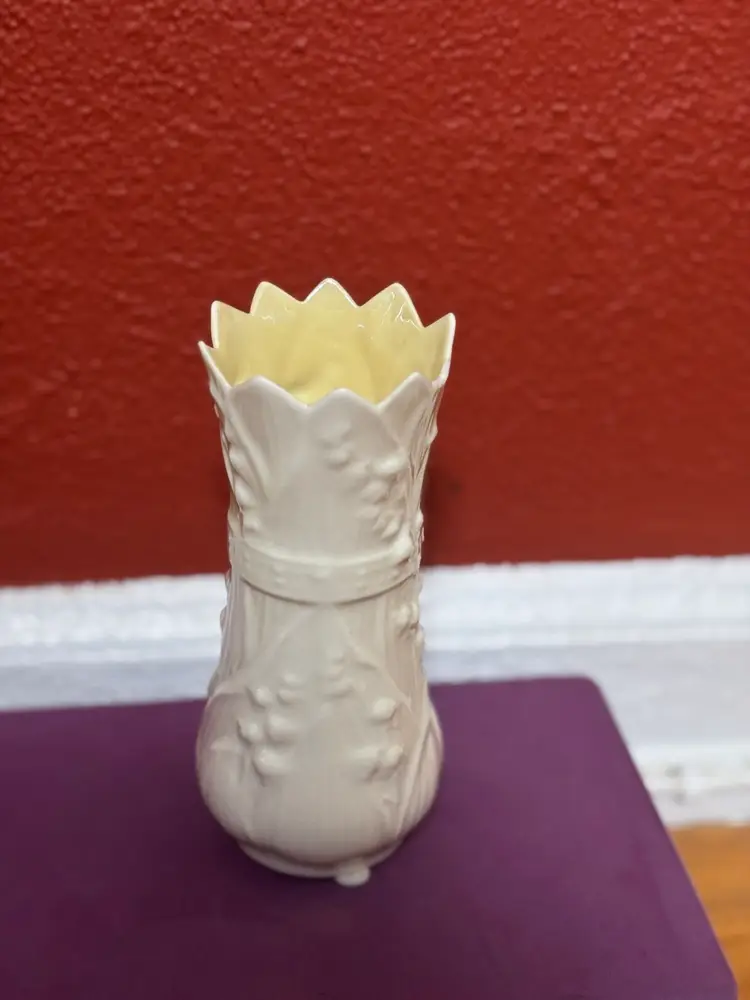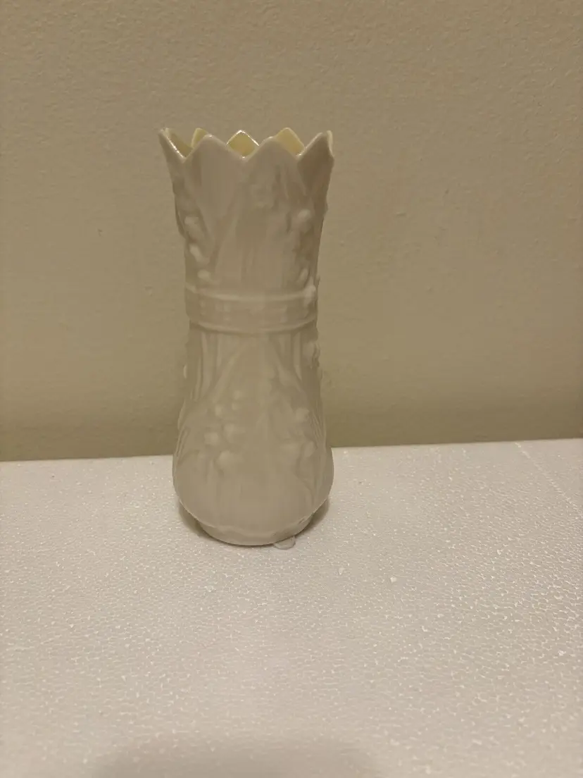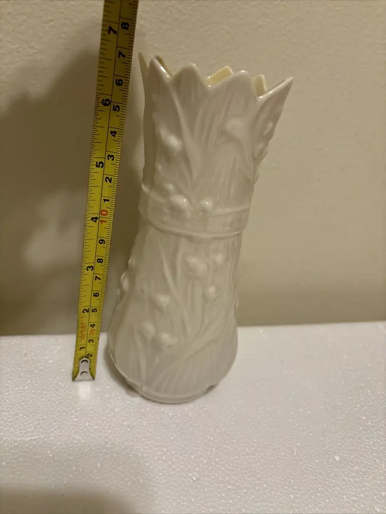 Brand: Belleek Type: Vase Color: White Item Height: 10 in Theme: Romantic Material: Porcelain Country/Region of Manufacture: Ireland Subject: Rose Vintage: Yes