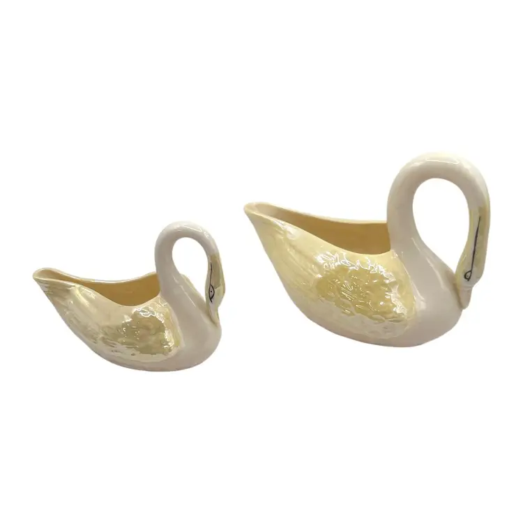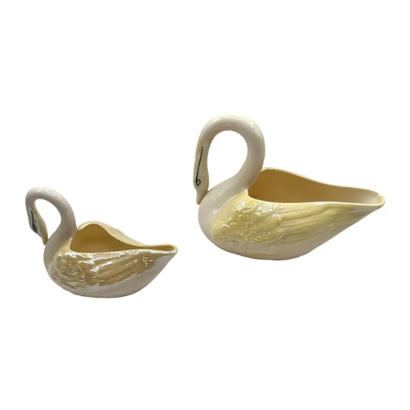 2 Vintage Belleek Porcelain Ivory Swan Creamers Includes the following: