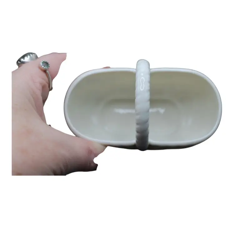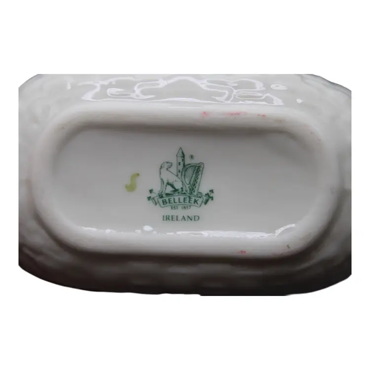 Belleek Ireland Shamrock Basket 6th Mark (1946–1955) Hand-Painted Porcelain Vintage Irish 4”x2”x3 1/4”. No chips or cracks.