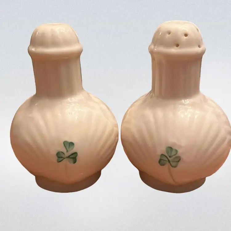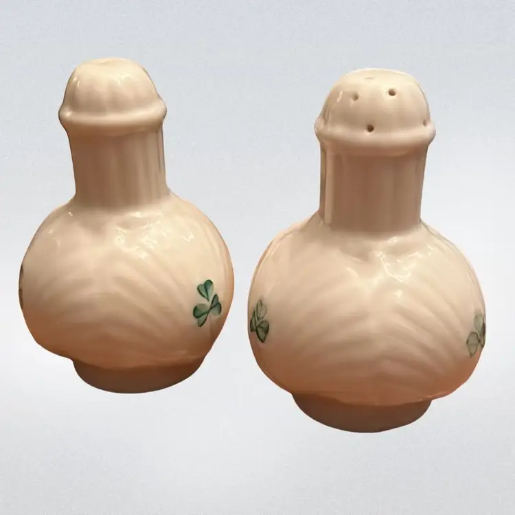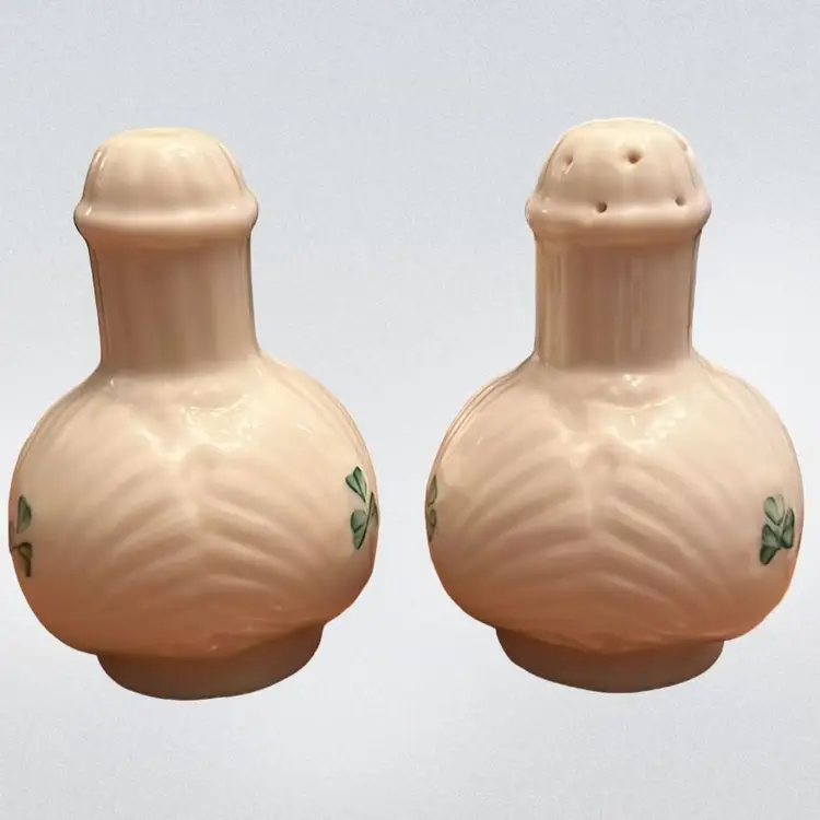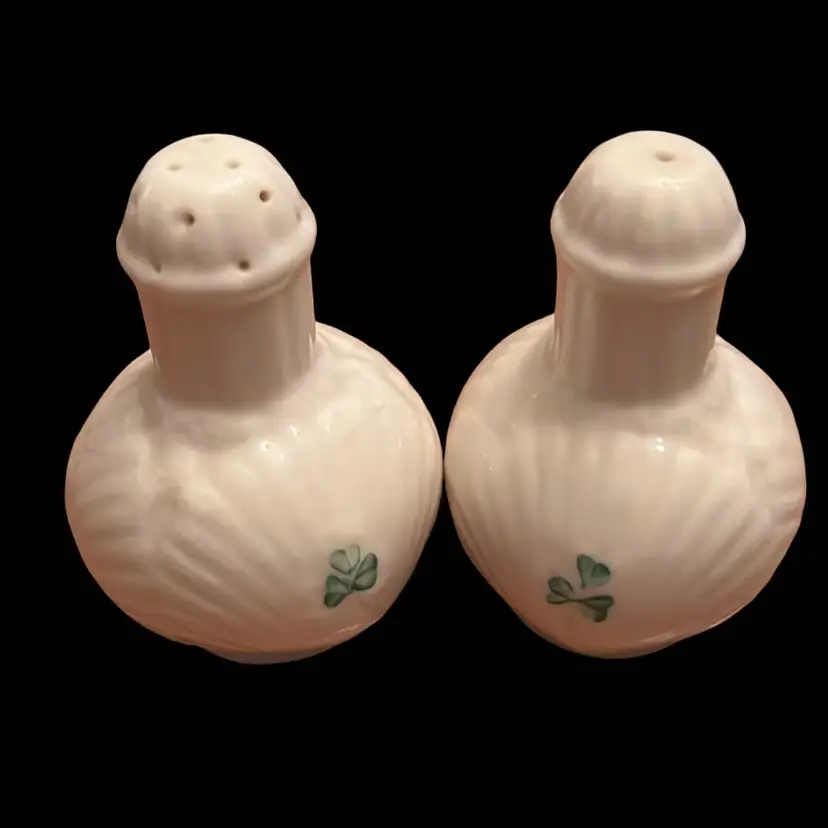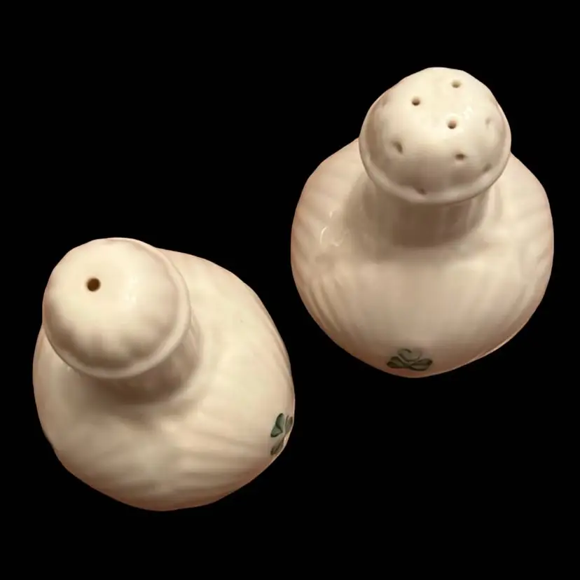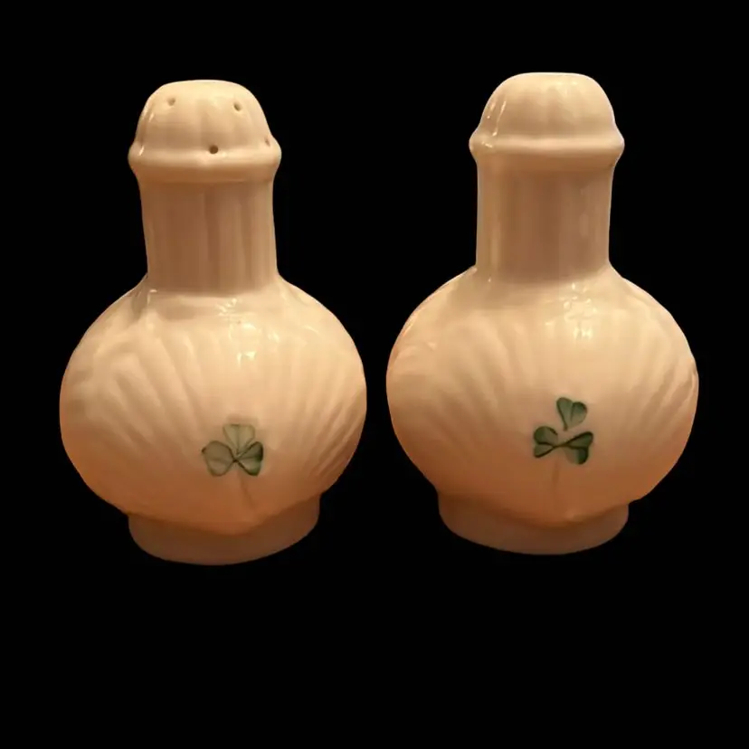 Happy St Patrick’s Day! Enjoy this lovely set of salt and pepper shakers. The green shamrocks are hand painted and vary light and dark, see photos. No chips or cracks. Slainte!