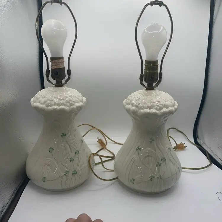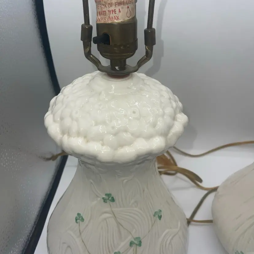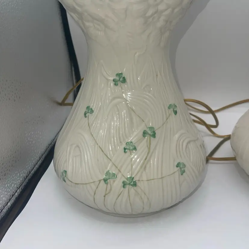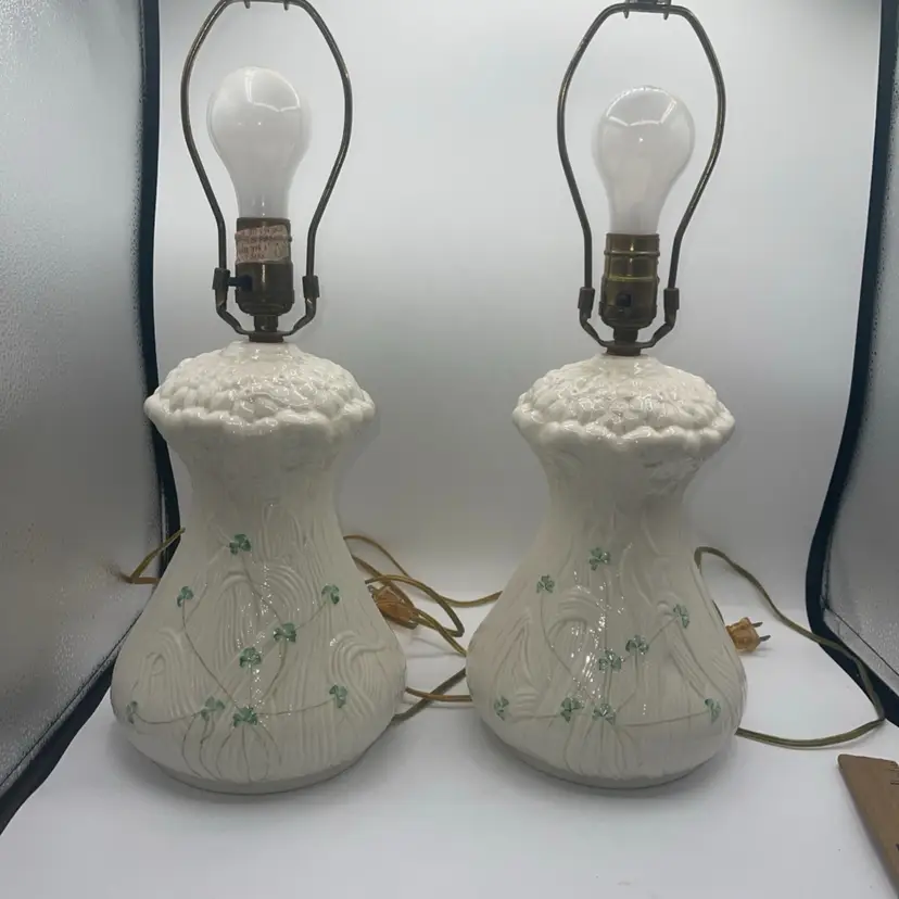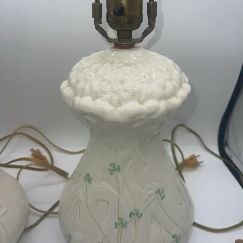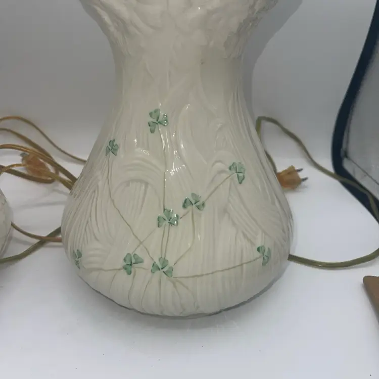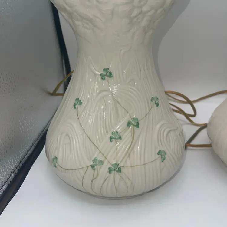 Belleek Shamrock Clover & Daisy Flower Design Irish Porcelain Table Lamp X2