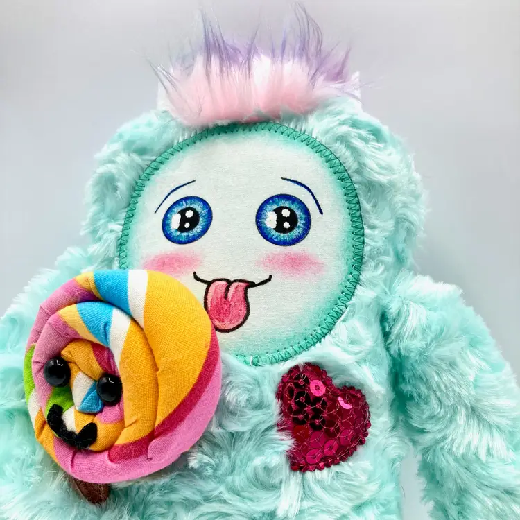 The lollipop is made from: Cotton fabric, plastic safety eyes, lightly stuffed with poly-fil