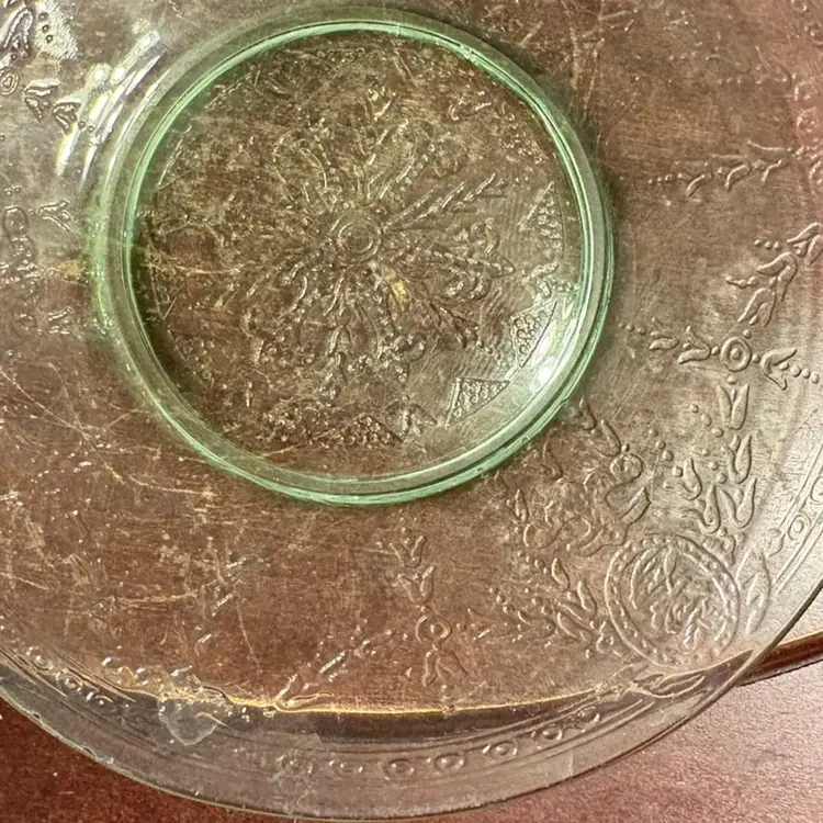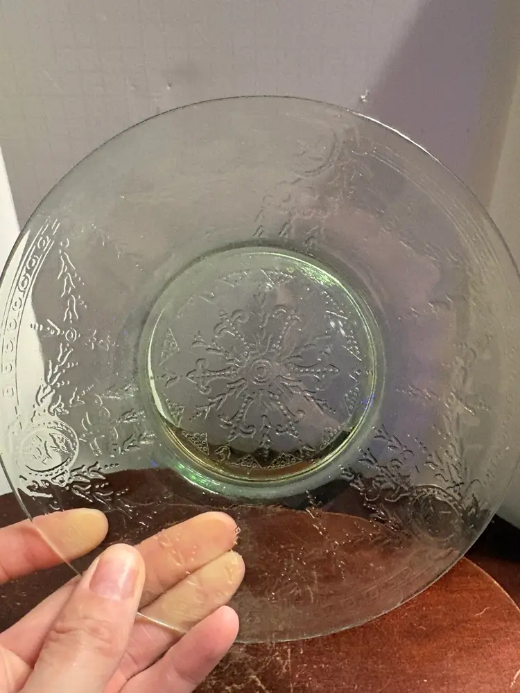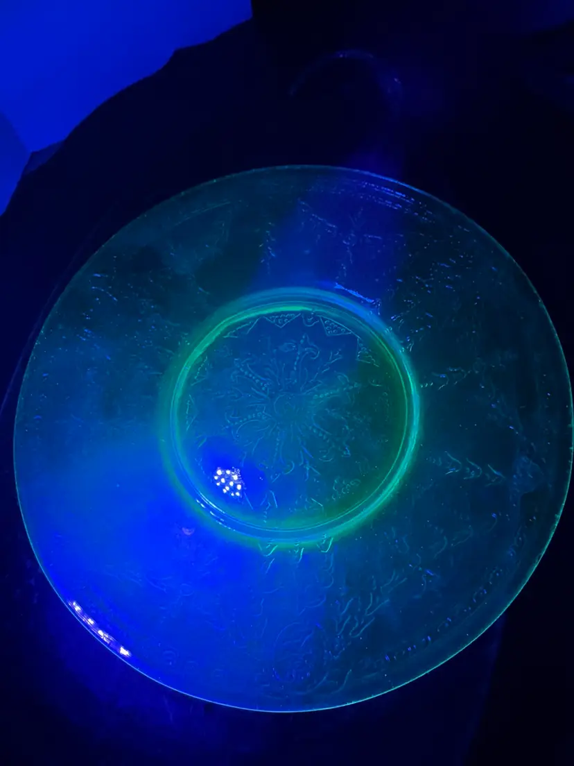 1930s, 7” diameter, uranium glass