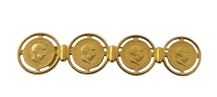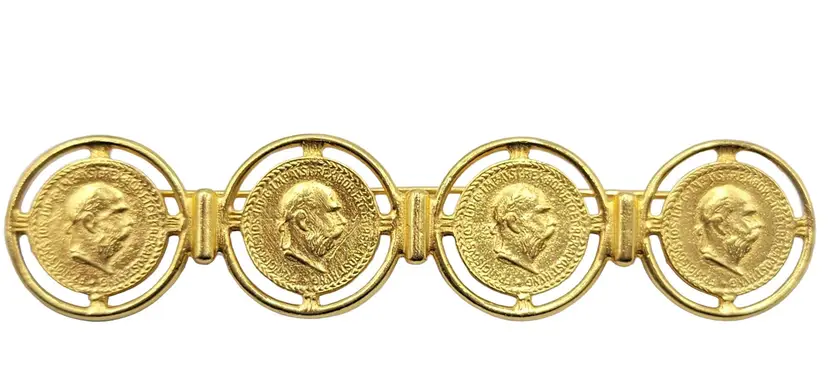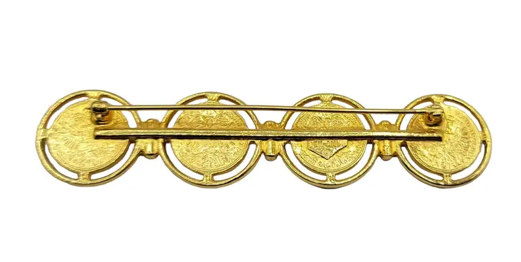 Ben Amun Gold Tone Four Lined Coins Bar Brooch, Signed