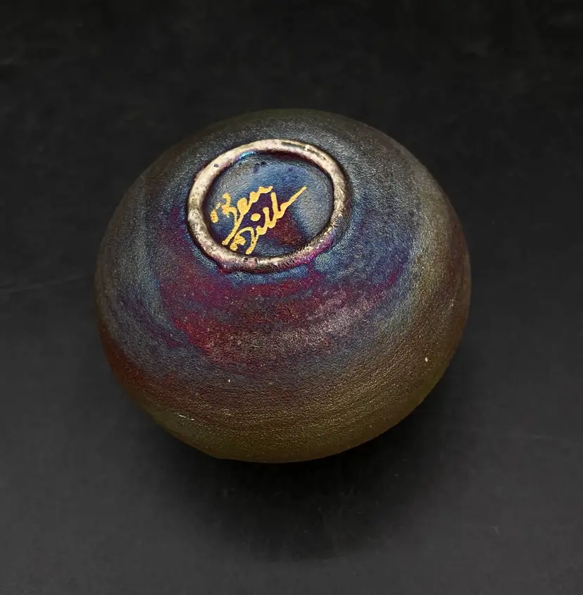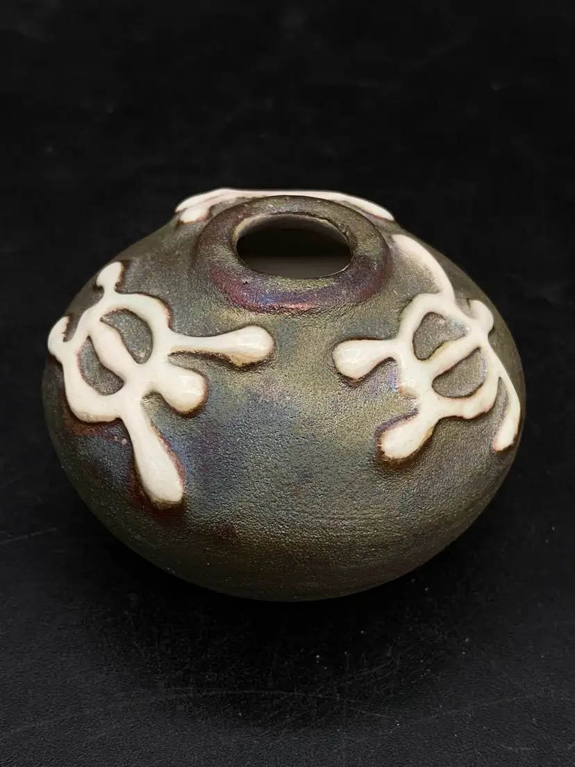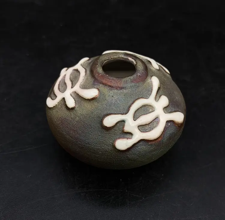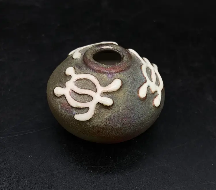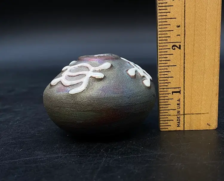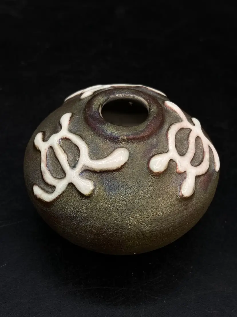 Ben Diller Signed Sea Turtle Raku Pottery Miniature Vase 1.75” Tall Super cute little bud vase. Good Condition See Photos
