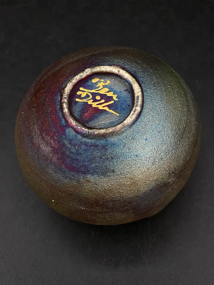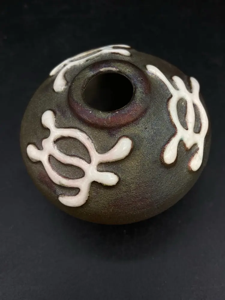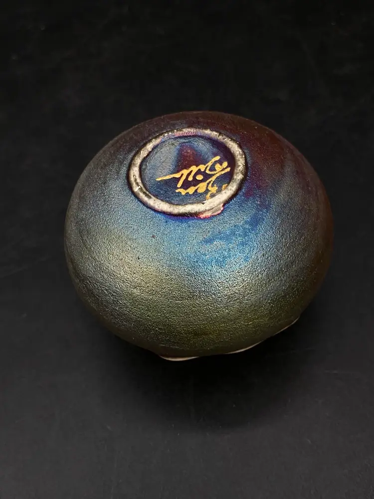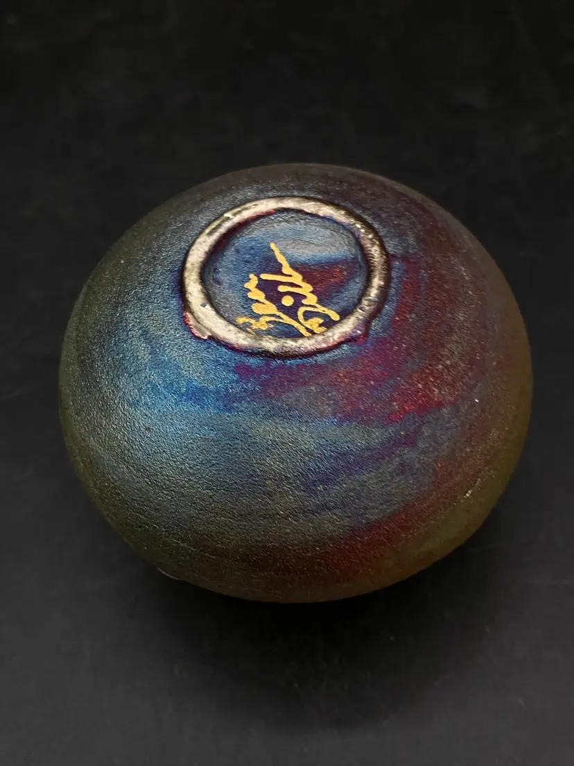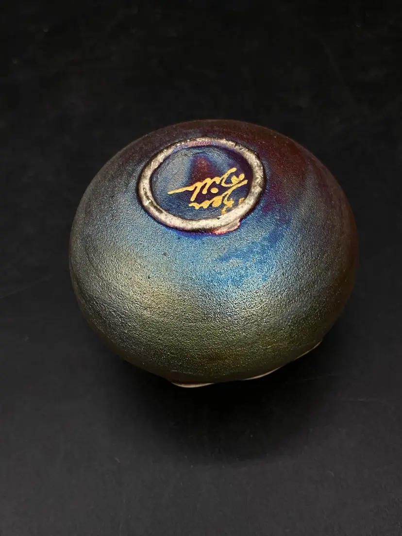 Ben Diller Signed Sea Turtle Raku Pottery Miniature Vase 1.75” Tall Super cute little bud vase. Good Condition See Photos