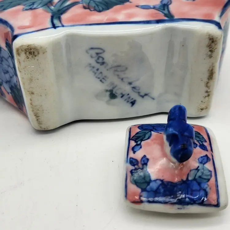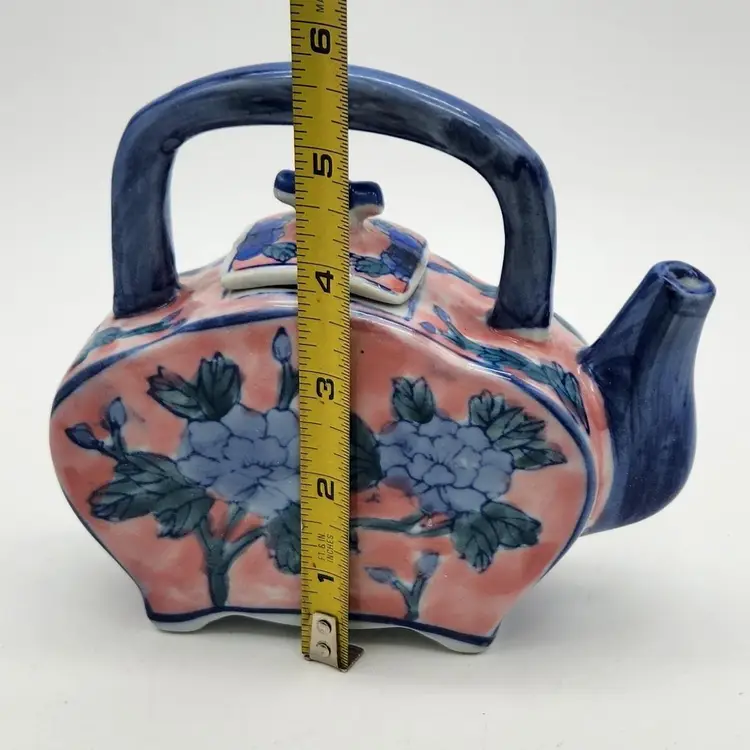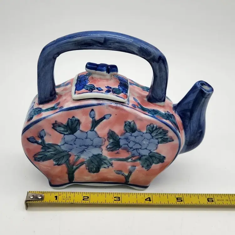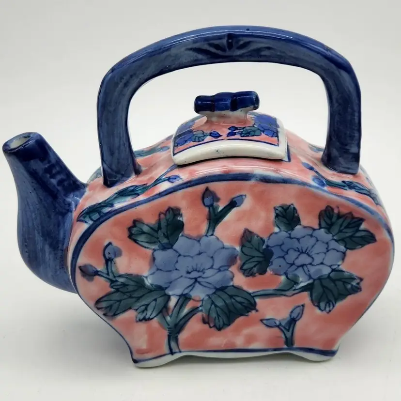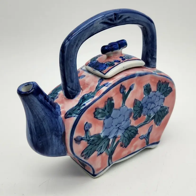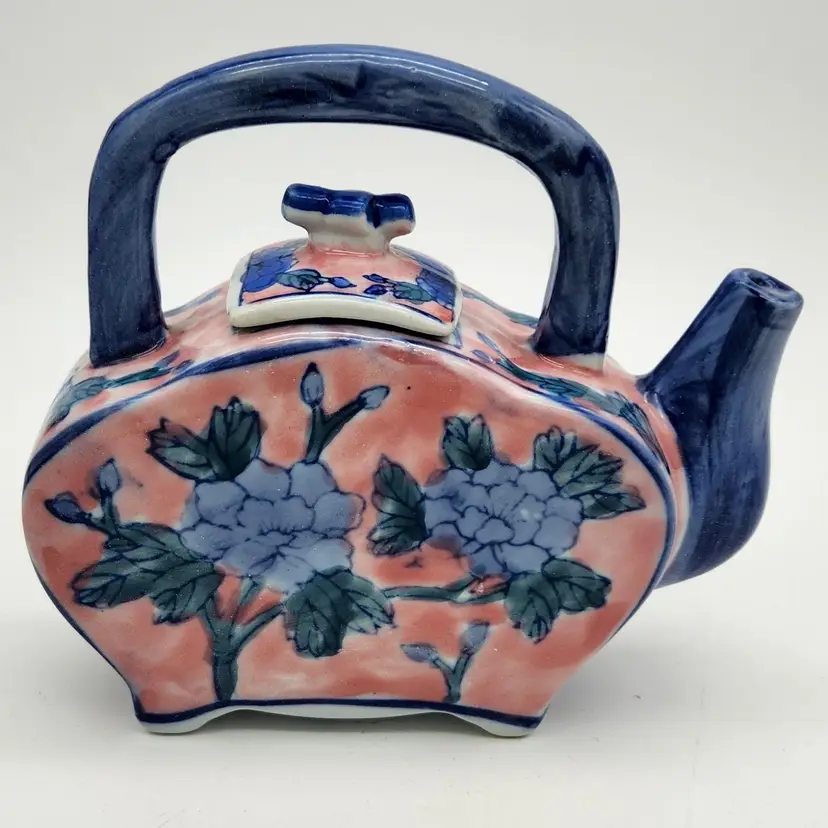 Ben Rickert marked Chinese Floral Teapot with flat sides & square lid. Unusual shape makes this one a fun addition to your collection! Approximate size is 5½" x 6" x 2"wide. Thanks for looking. ;-)