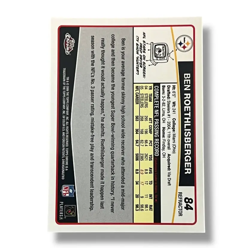 Here We Have a Ben Roethlisberger Refractor 2006 Topps Chrome Refractor #84