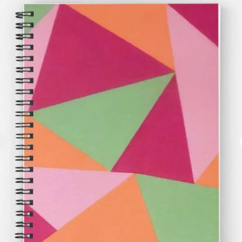 geometric, pink, orange, green, neon, triangles, angles, textile, notebook, journal, modern, contemporary, gift for her, paper