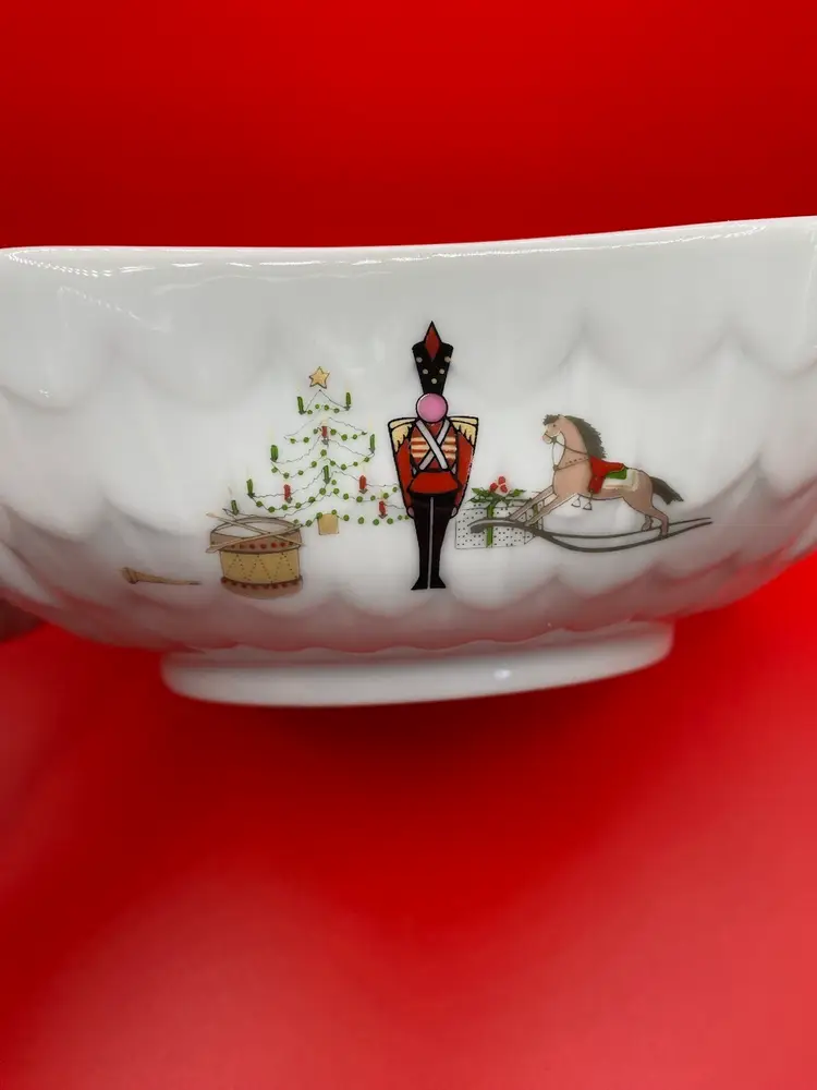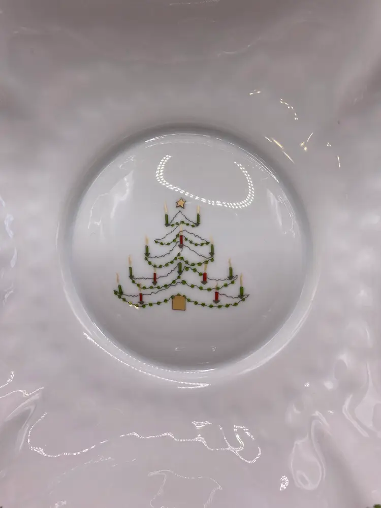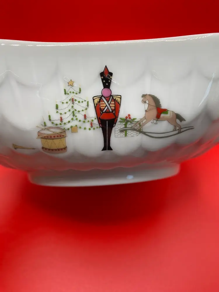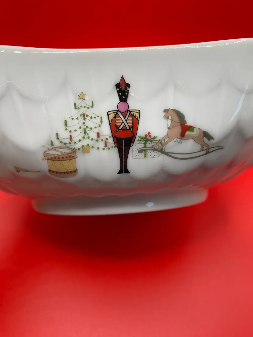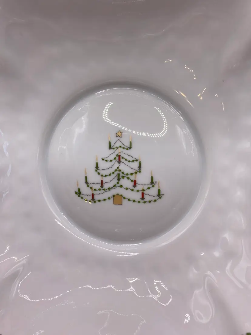 Beautiful holiday bowl in good condition. No chips or cracks. Bowl measures 6-1/2” x 6-1/2” x 2” tall.