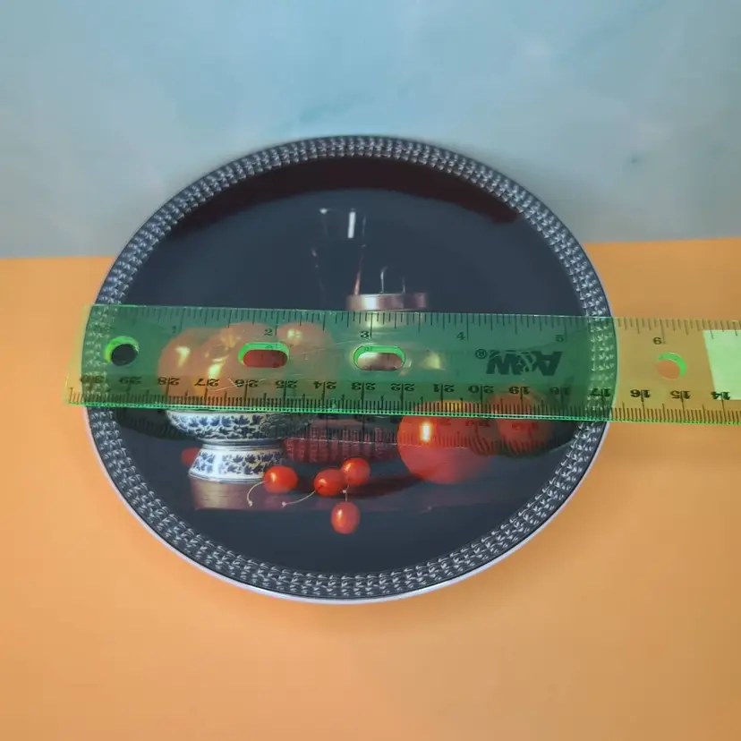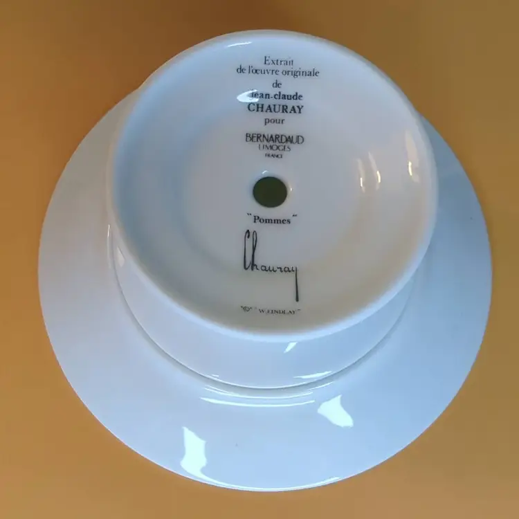 This footed plate stands 2.25 " high and is 5.5" across. It is in excellent condition with no chips or cracks. The design includes apples and cherries. Get $5 all orders until 12/31/25 using the code: WHATNOTS