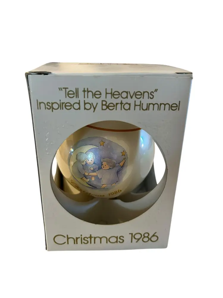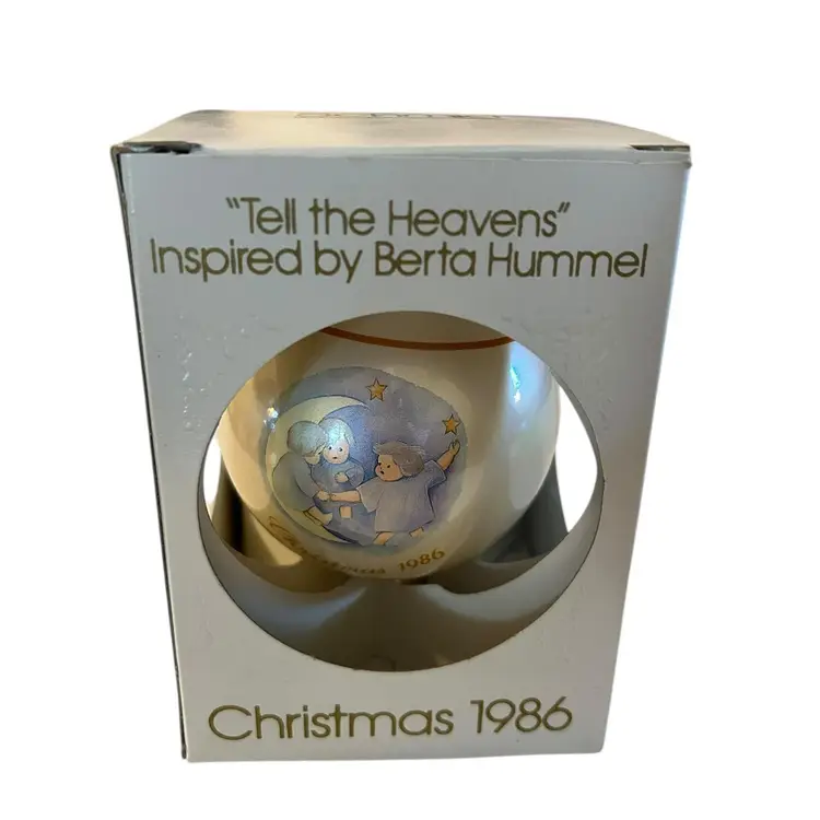 • 1986 Berta Hummel design • "Tell The Heavens" model • Schmid Christmas ornament • Includes original box • Perfect for collectors