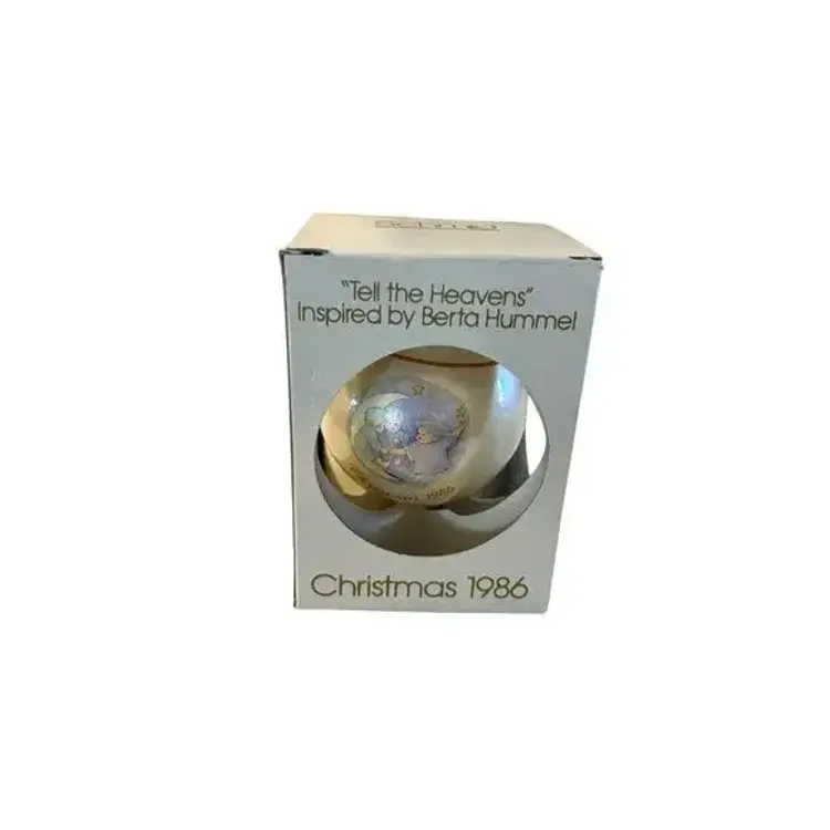 Add a touch of nostalgia to your holiday decor with this 'Tell the Heavens' Christmas ornament inspired by Berta Hummel. This 1986 collectible features a charming design that captures the season's essence. Perfect for collectors or as a thoughtful gift, this ornament is in its original packaging, showcasing its vintage appeal.