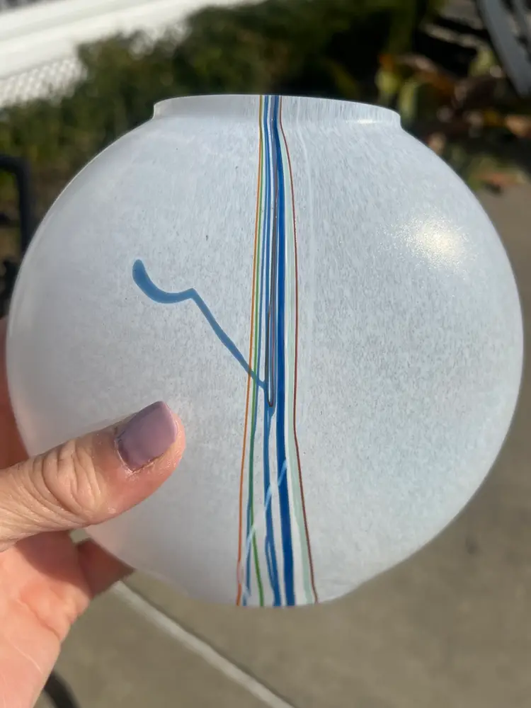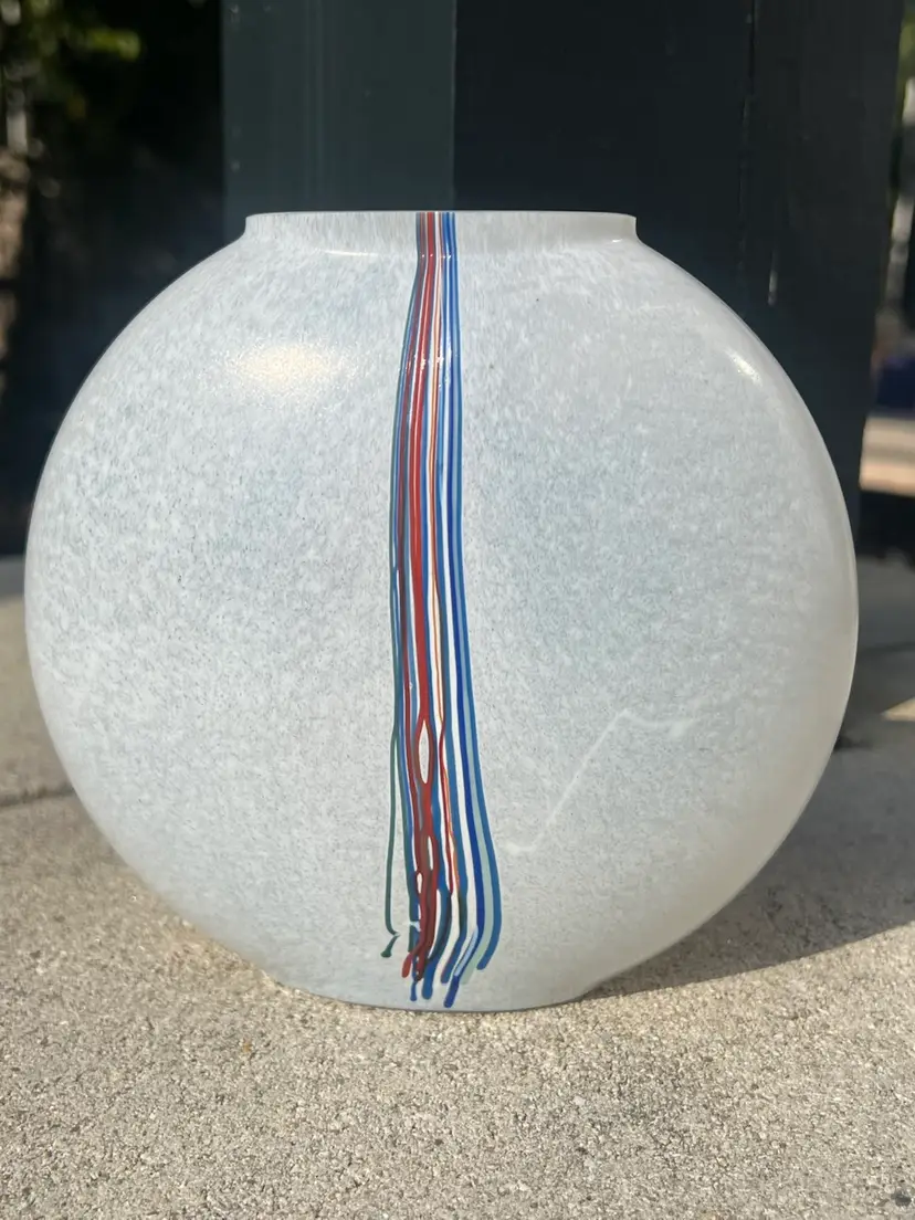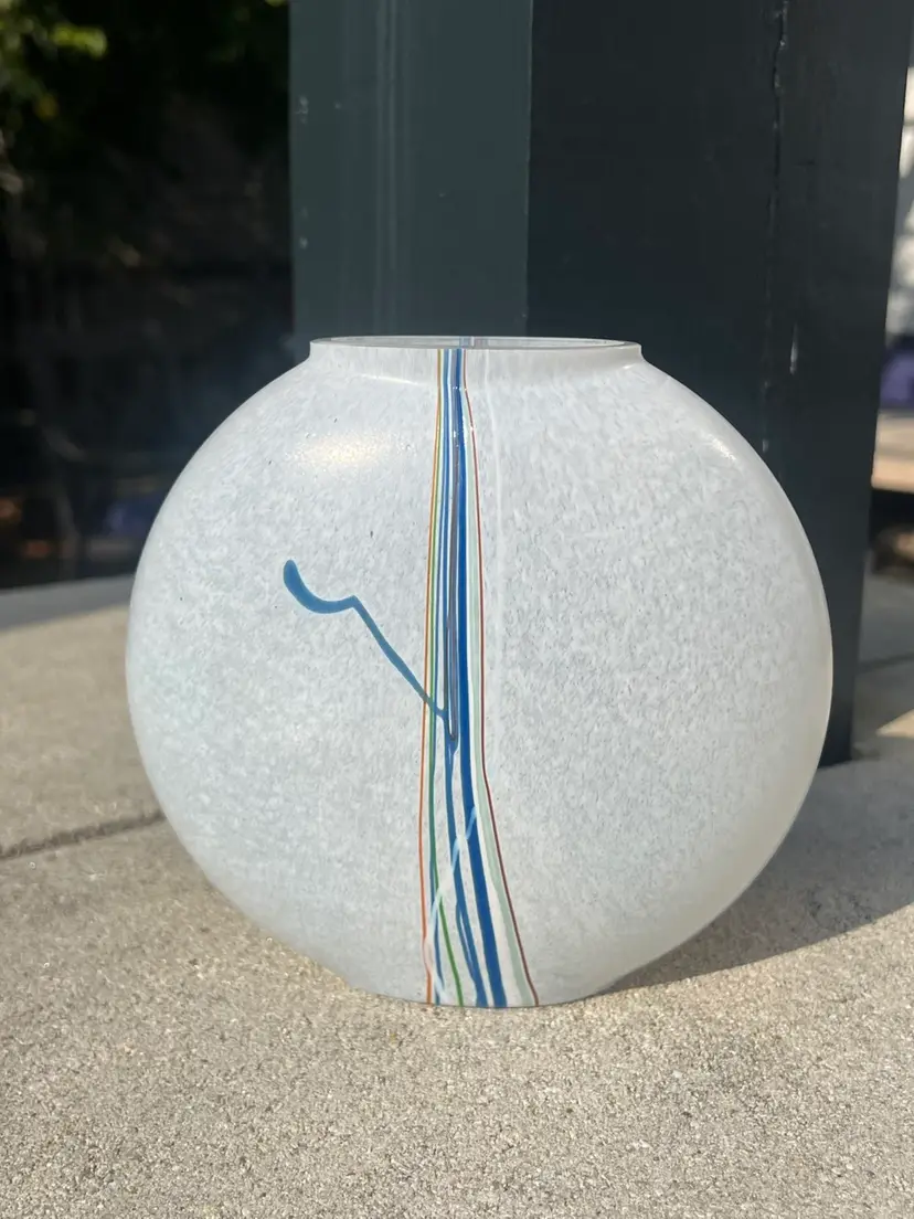 Beautiful art glass vase made by Kosta Boda from the 1980’s. this "Rainbow" line flask style vase was designed by Bertil Vallien originally for Afors, but marketed under the Boda brand once the original company was taken over by the larger glassmaker.