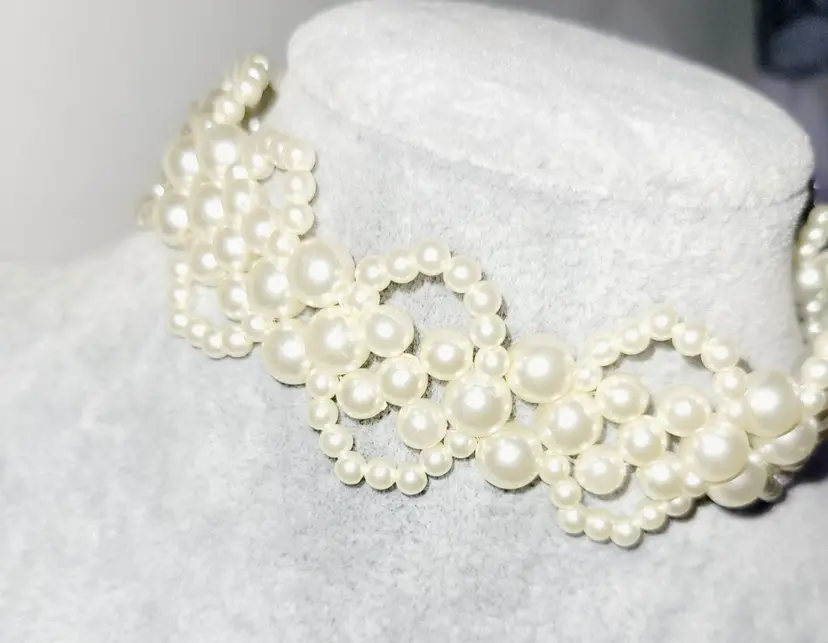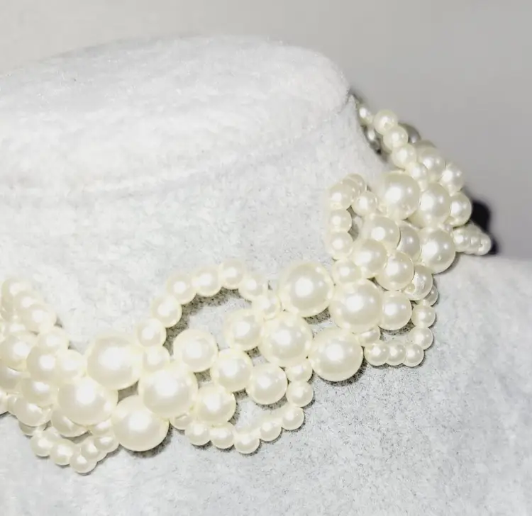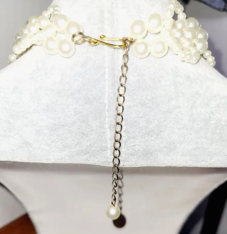 This vintage-inspired choker features a stunning 3-tier design with faux pearls in graduated sizes. The adjustable chain adds versatility and ensures a secure fit for any occasion.