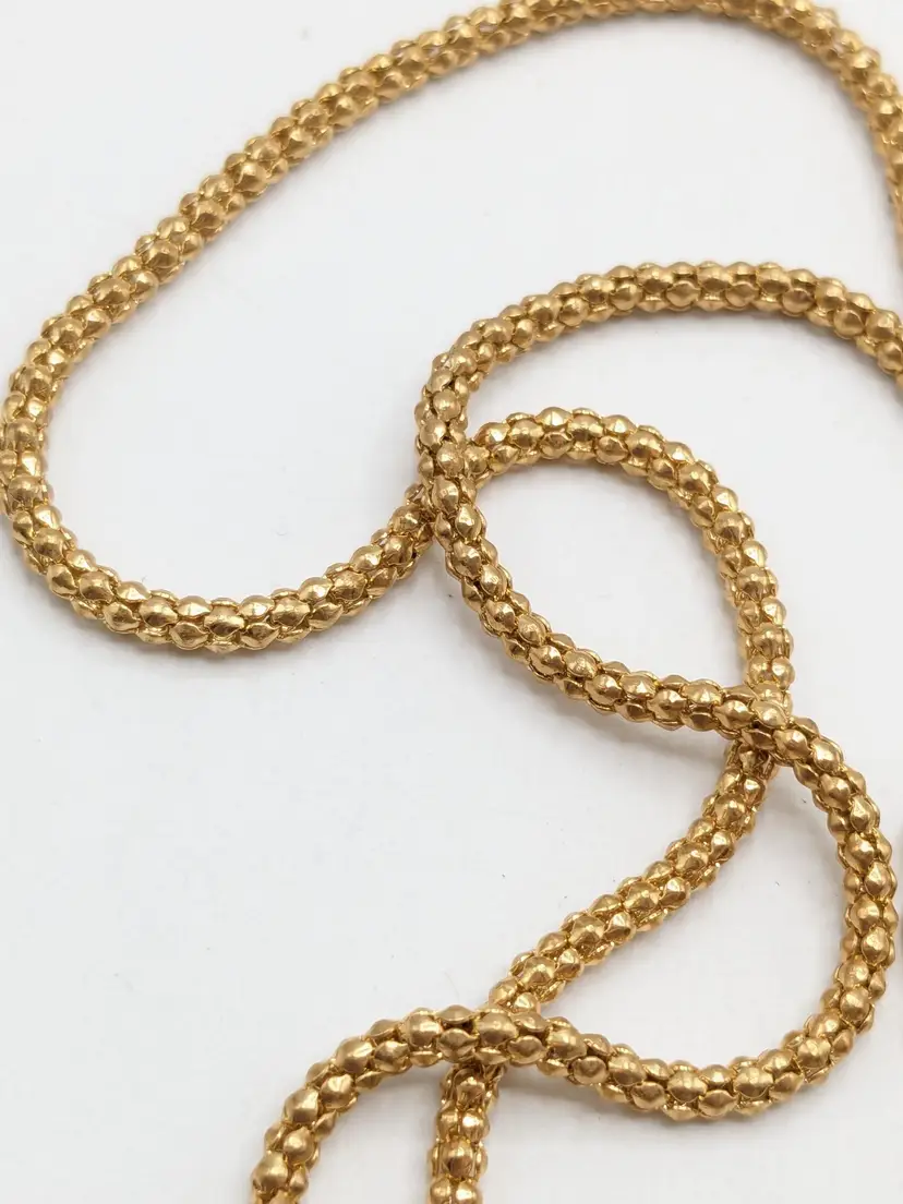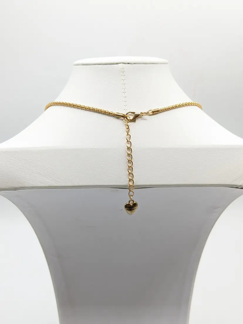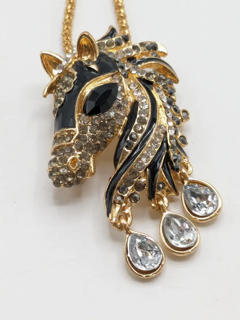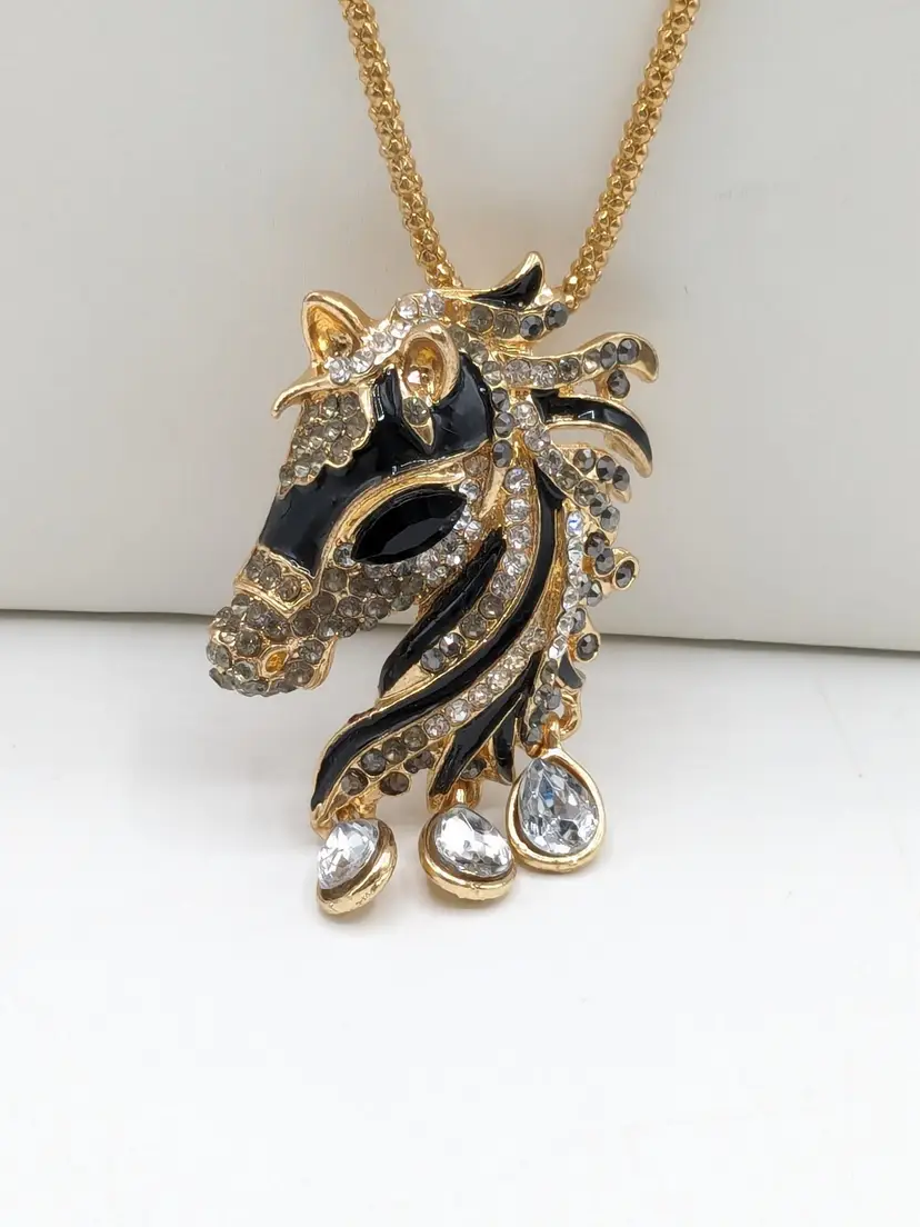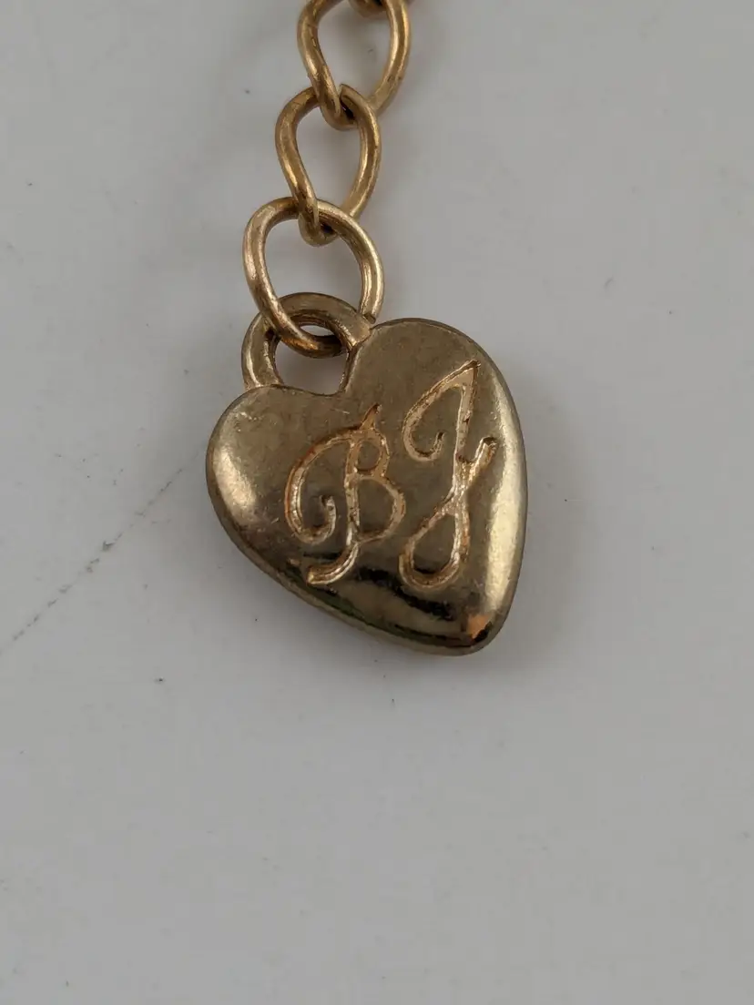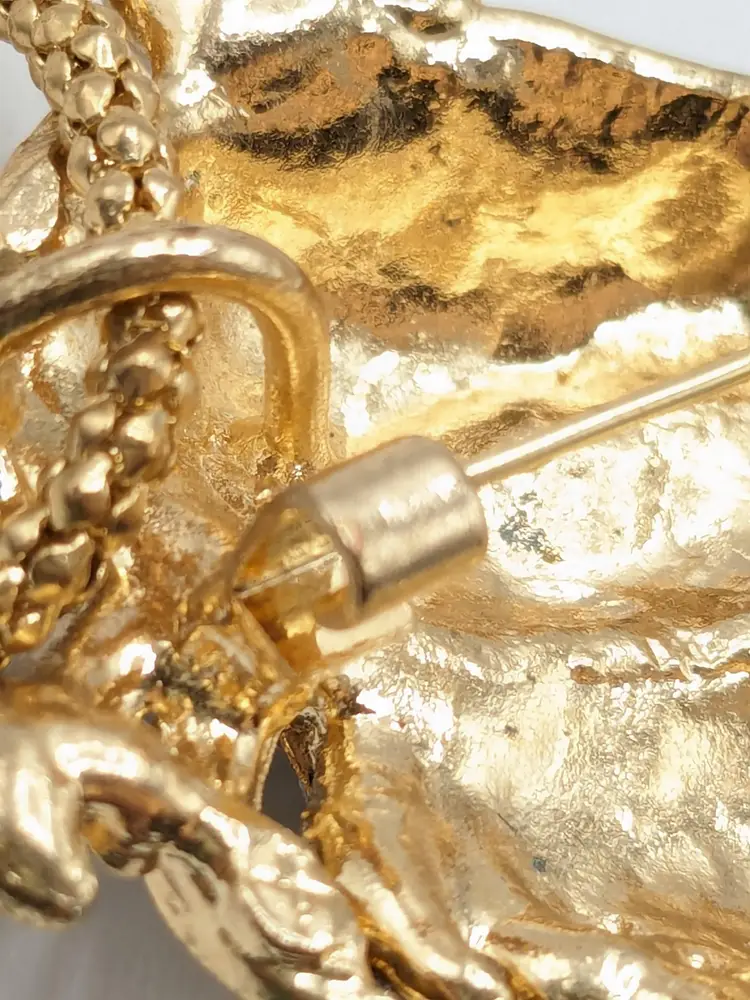 Good condition. Signed Betsey Johnson. Combination necklace or brooch. Gold tone. Chain measures 28" + 2 1/2" extension. Pendant/brooch measures 2 1/4" length and 1 1/4" wide.