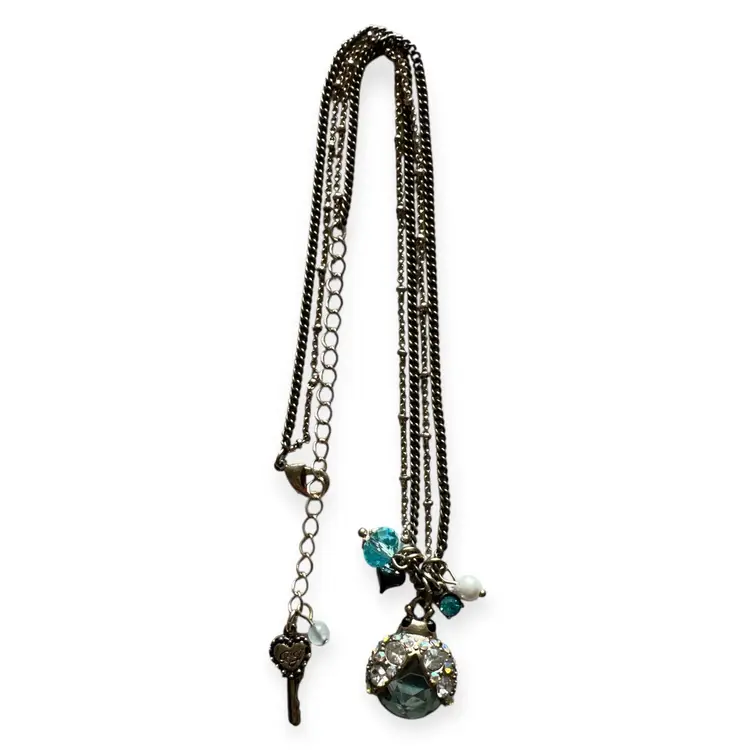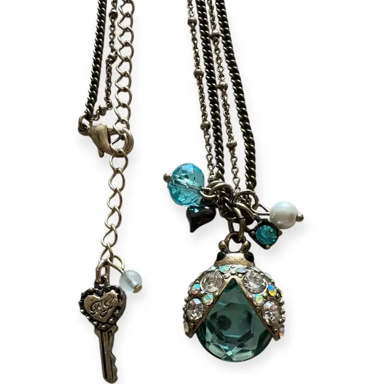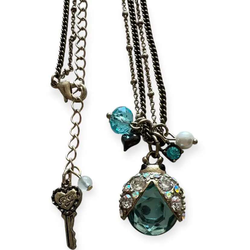 Betsey Johnson Ladybug Aqua Crystal & AB Rhinestones Double Chain Necklace π #ofc-2