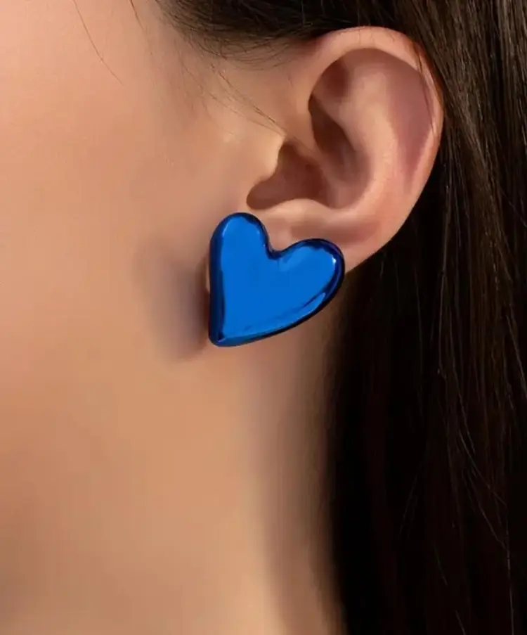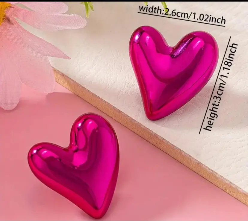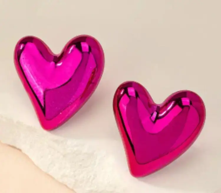 BETSEY JOHNSON METALLIC PUFF STUD HEARTS,FUSHIA PINK,LIGHTWEIGHT STAINLESS STEEL, OPEN BACK, SILVERTONE ,STORE SAMPLE NEW NEVER WORN...NO ORIGINAL TAGS OR PACKAGING, $34 99
