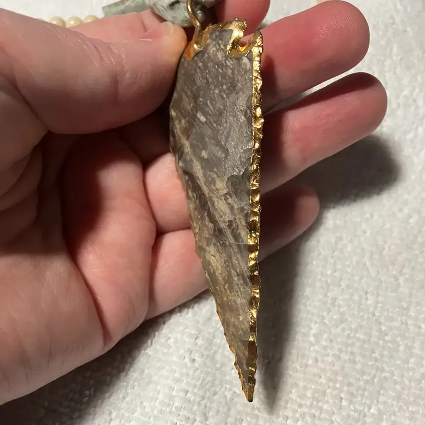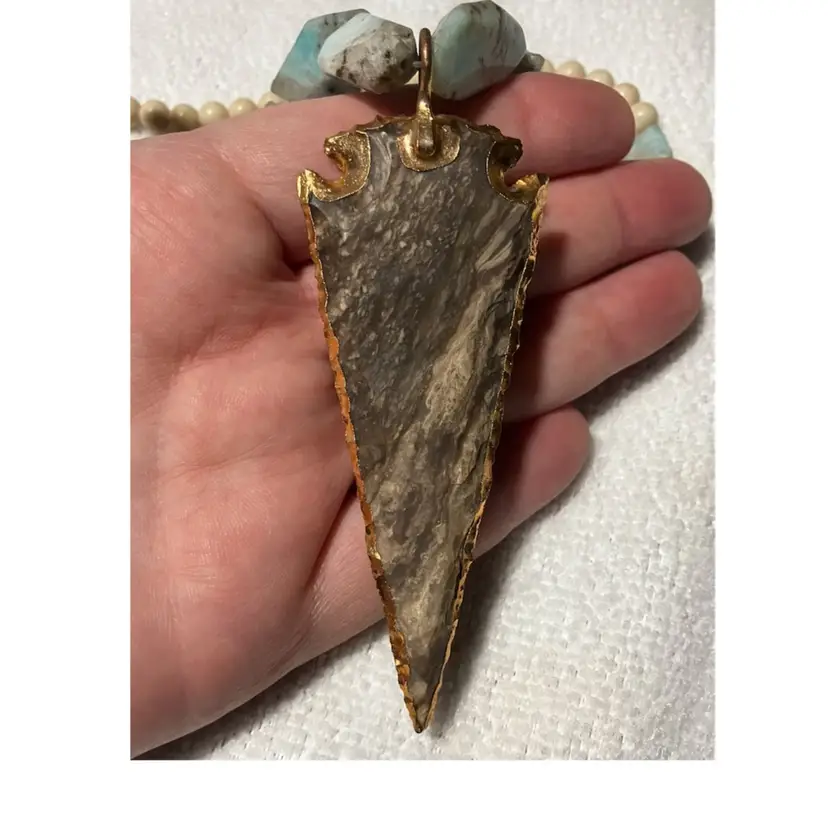 Stone and acrylic. Length 32”. Arrowhead 3.5” and 2” extender.