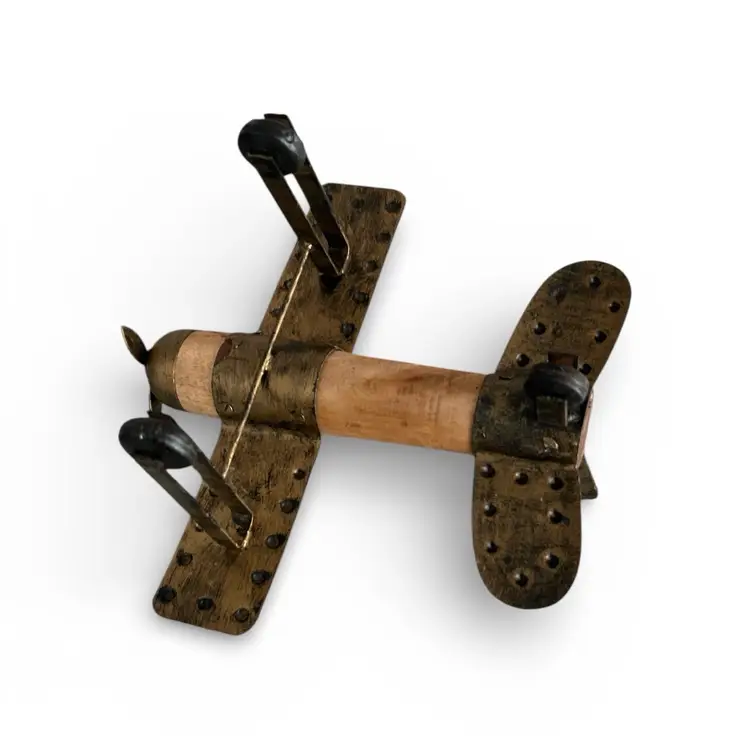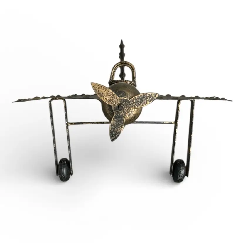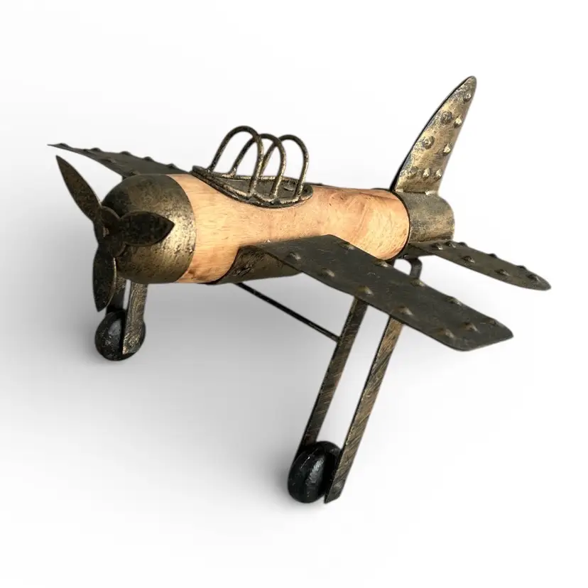 Elevate your decor with this charming vintage airplane figurine, crafted from brass and wood. Perfect for aviation enthusiasts or as a unique decorative piece. Size: 9” x 10”