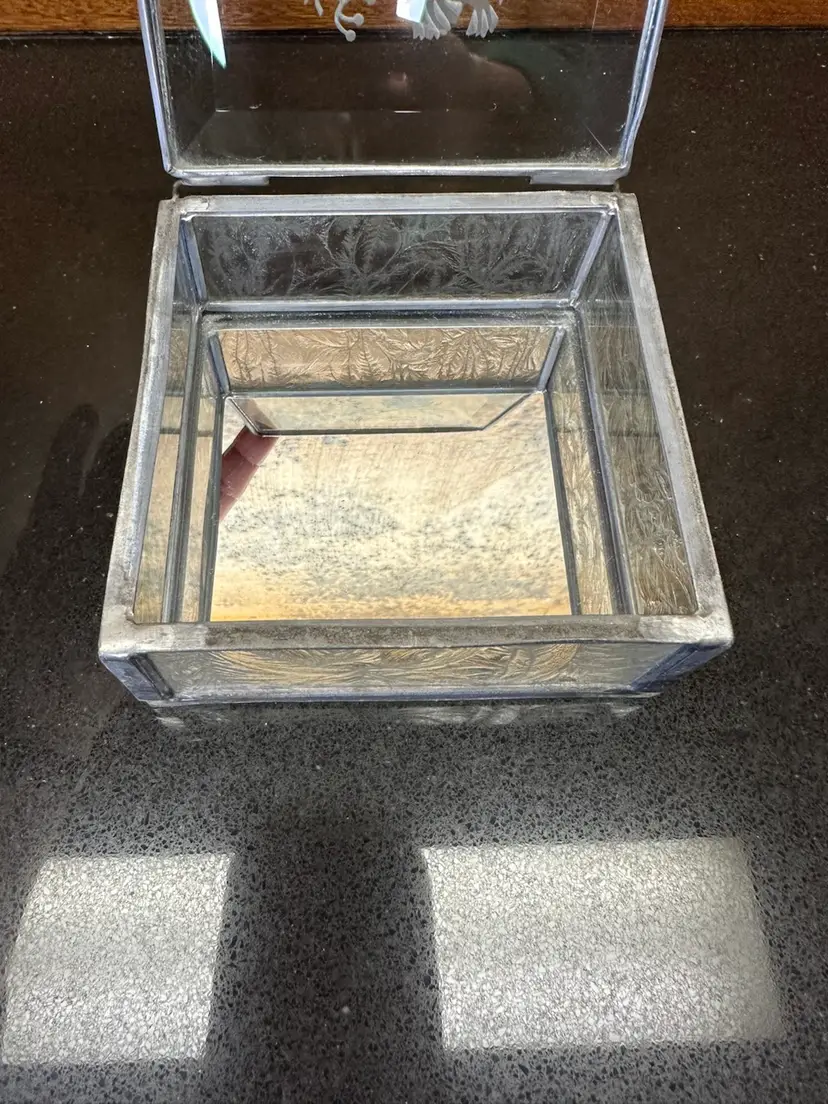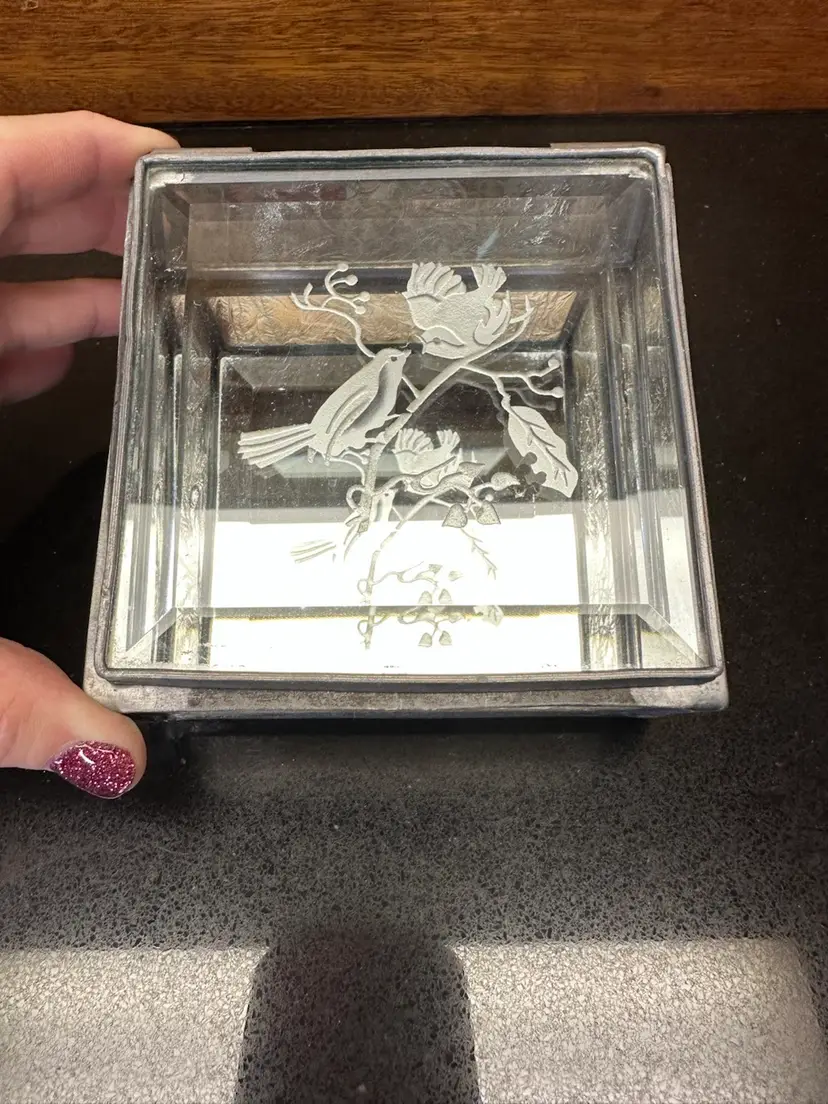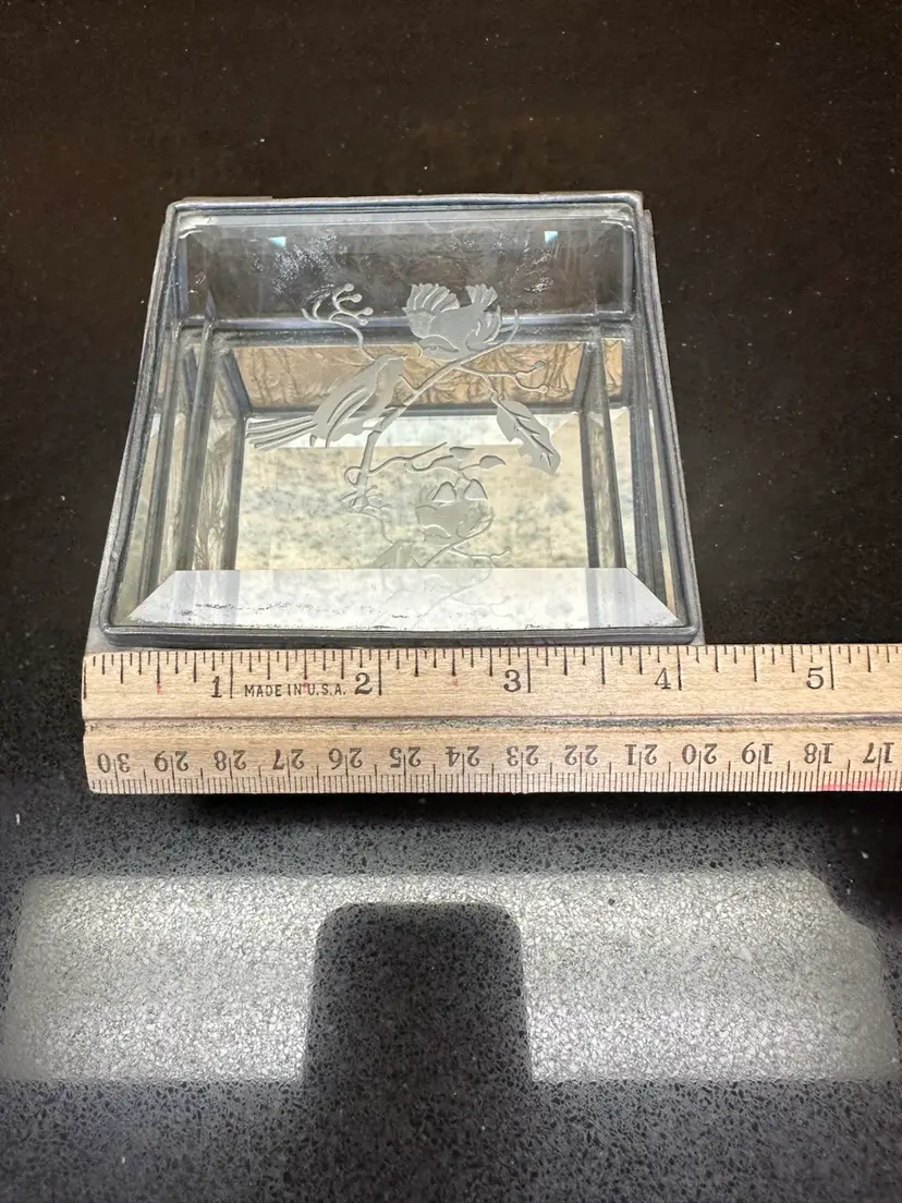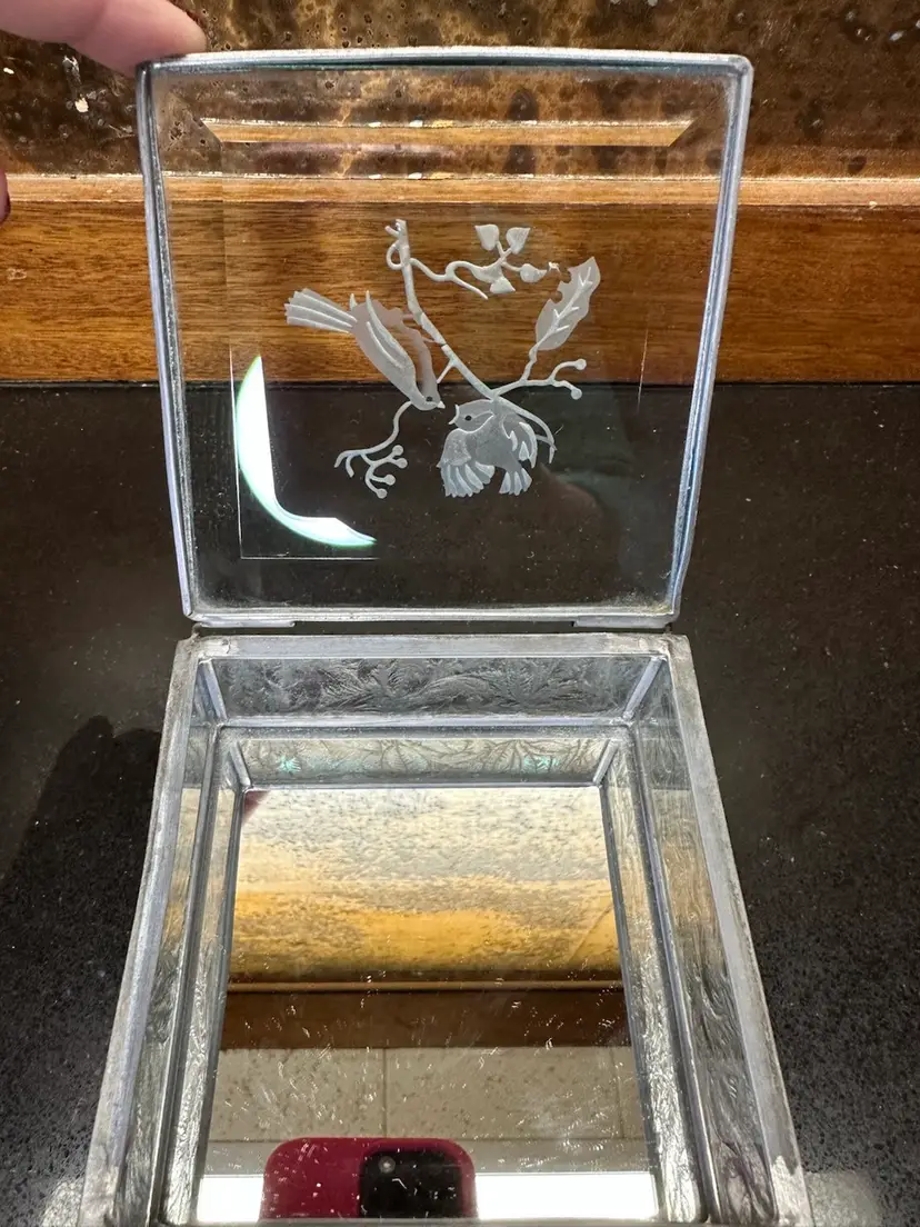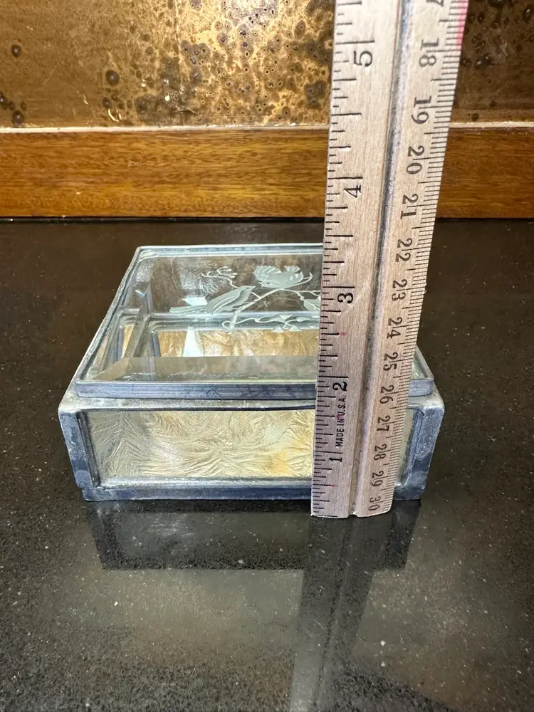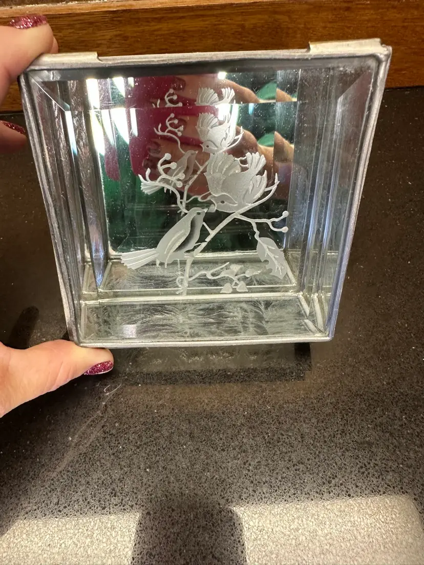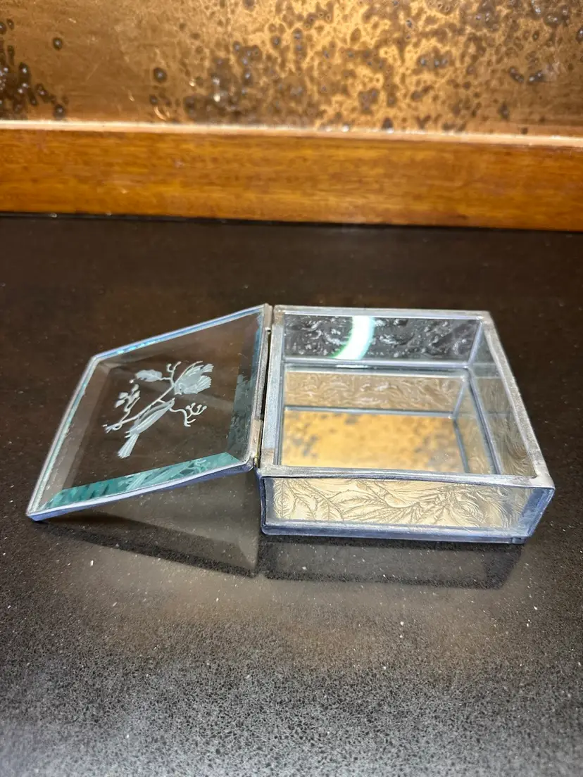 4”x4”x2” hinged glass box with etched birds
